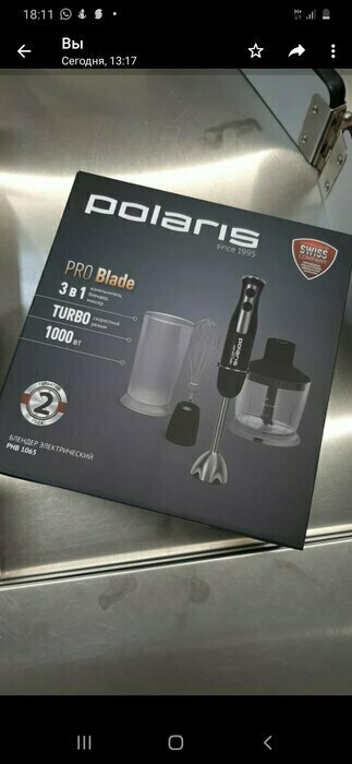 Давно искал хороший блендер в подарок жене, чтобы соответствовали и цена и качество. И вот я его нашел. Блендер имеет 3 режима.(измельчает,взбивает и перемалывает). В комплекте есть: ▪ Мерный стакан объемом 0,6 л.Стакан выполнен из качественного пластика, цифры отлично выгравированны . ▪ Насадка блендера - измельчителя.Качество ножей отличное,сталь нержавеющая,ножи очень острые. ▪ Чаша измельчителя объемом 0,5 л. ▪ Венчик для взбивания. Насадка легко защелкивается и крепко держится за основу блендера.Чаша для измельчителя удобная,ножи хорошо измельчают. Венчик хорошо взбивает, в руках держать удобно.Дискомфорта нет.Качество ножей на высоте, очень острые и сталь нержавеющая. Вся семья довольна покупкой.