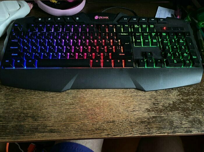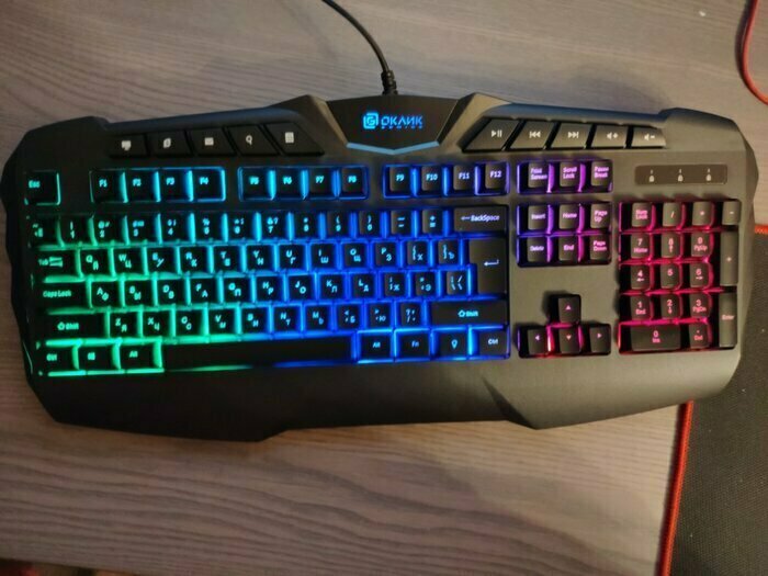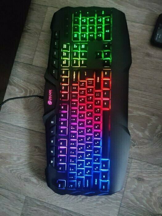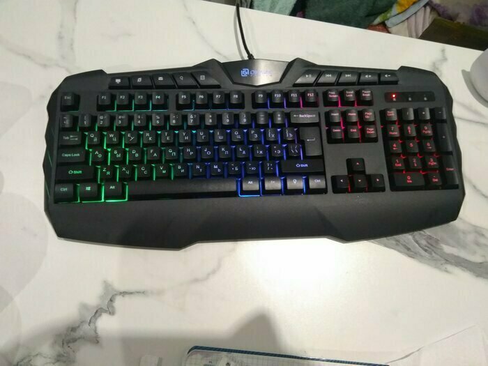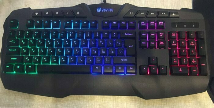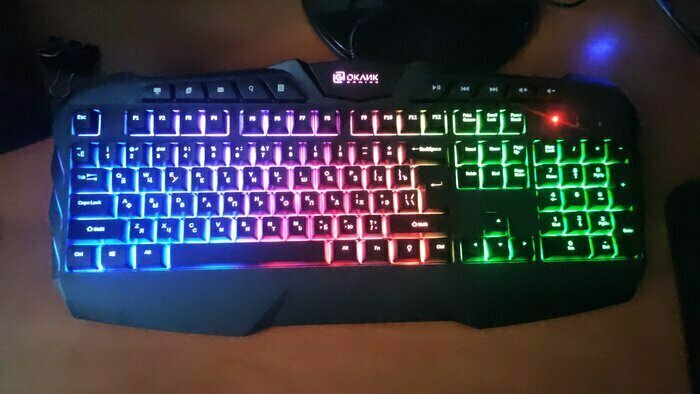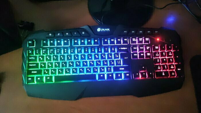 Искал клавиатуру для печати с подсветкой взамен классике Logitech K120. По удобству набора текста ОКЛИК сильно проигрывает классике. Для сравнения: - фото 1 - без подсветки на свету - фото 2 - с подсветкой на свету - фото 3 - с подсветкой в сумраке - фото 4-6 - три типа подсветки - фото 6-8 - три уровня подсветки