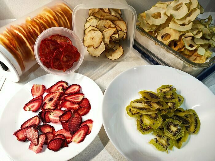 Впечатления от сушилки крайне положительные, сушёные фрукты и овощи это реально вкусно. Смотря на ценники сухофруктов в магазине волосы встают дыбом, это сушилка очень быстро себя окупит. Очень приятно иметь такую технику на кухне.