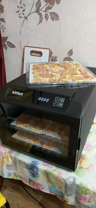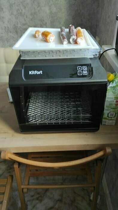 Однажды в тик ток увидела ролик, там женщина готовила домашние колбаски в дегидраторе, с тех пор загорелась желанием приобрести такую вещь, посмотрела в интернет магазинах и мой выбор пал на Китфорт. У меня уже имеется техника данного бренда, которая работает без нареканий, поэтому решила купить именно Китфорт , тем более, что цена приемлема. Первым делом приготовили колбаски. Получилось очень вкусно, нам очень понравилось. Вообщем техника классная, рекомендую.