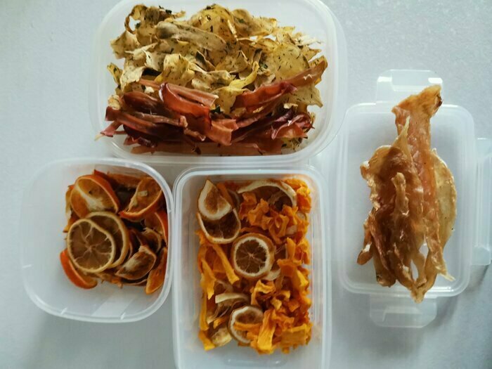 Хоть сейчас только весна, я уже многое посушила. Яблоки, дочь просто обожает сушеные яблочки. Апельсины, лимоны, мандарины-поэкспериментировала. Тыквенные цукаты просто шикарно. Картофельные чипсы, конечно же это не те чипсы которые продают в магазине, но мне понравились. Так в интересах эксперимента были высушены: кальмар, получилась вкусняшка. Филе курицы просто нереально вкусно. И рыбка, с первого раза получилось не очень, но буду дальше пробовать. А еще пробовала сушить безе в сушилке, сушит хорошо! Покупкой довольна, жду сезон фруктов и ягод.