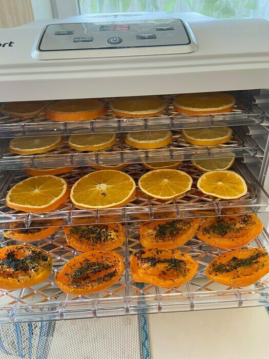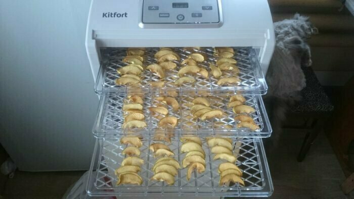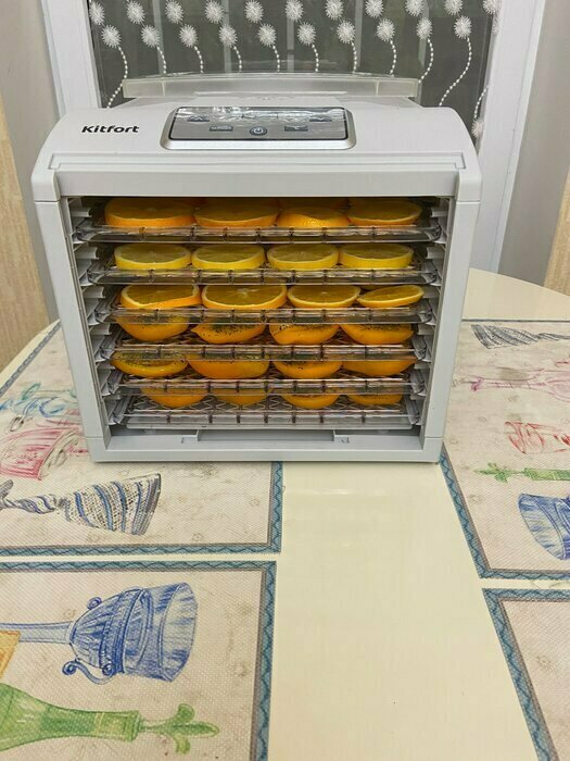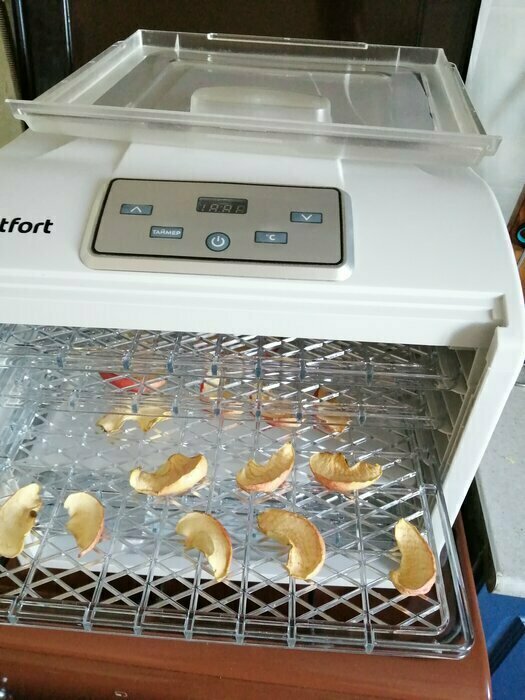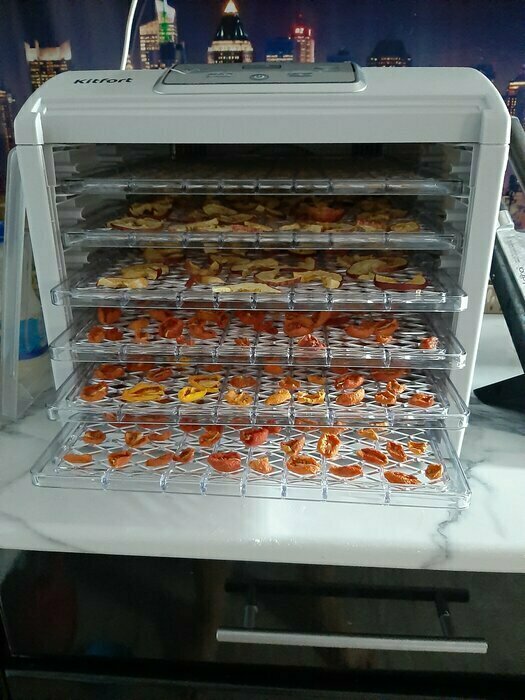 Использую уже год и очень довольна покупкой. Сушила все:от фруктов до овощей, и даже сушила мясо. Фруктовый чипсы получается замечательные. Сушила даже арбуз, за 30 часов работы аппарата -получились отличные арбузные чипсики. При необходимости удобно транспортировать на дачу.