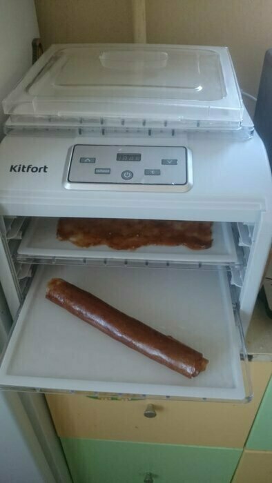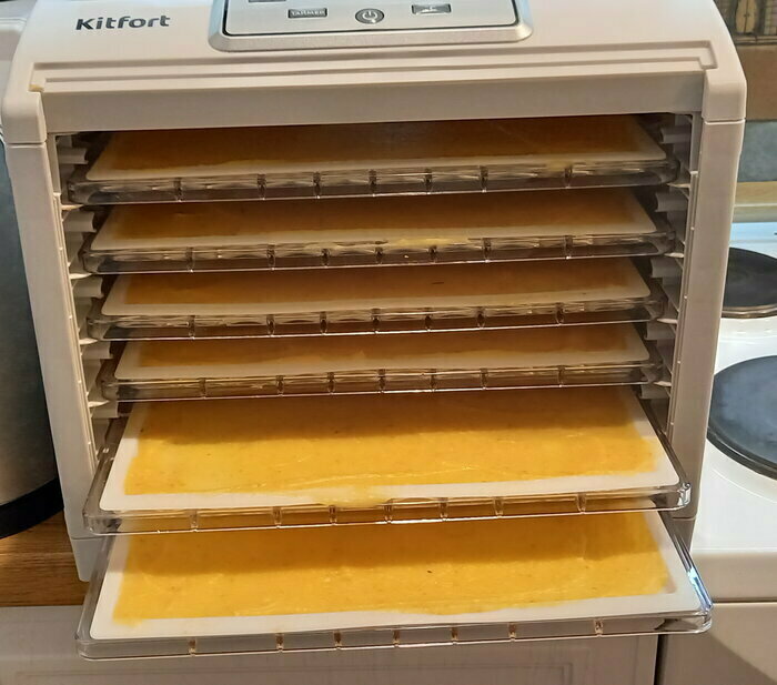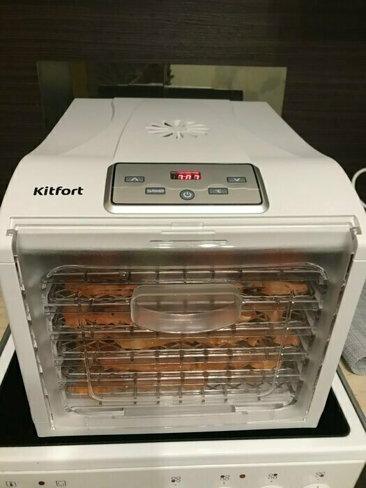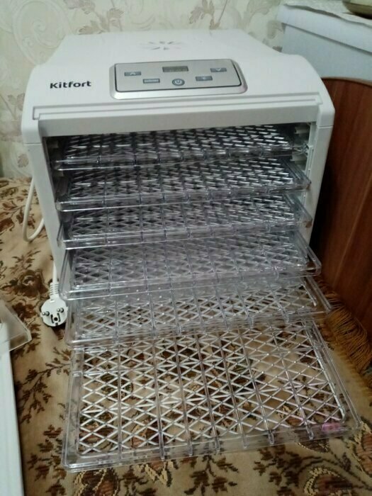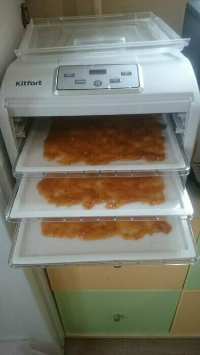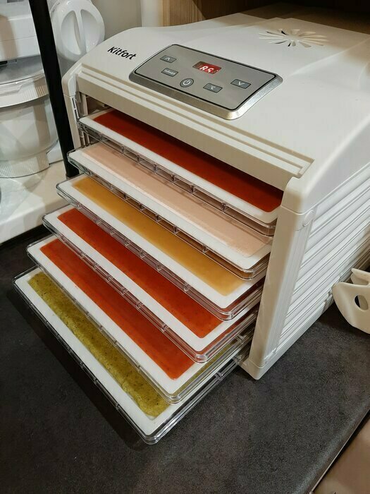 это уже не первая моя сушилка, до этого была с верхним обдувом, и в ней было необходимо менять лотки местами для равномерной сушки. тут все сушится равномерно, удобно смотреть стадию через прозрачную дверцу. в основном делаю пастилу, очень удобно на прямоугольных а не круглых лотках, выходят аккуратные рулетики. ооочень тихо работает, примерно как духовка с конвекцией. лотки выглядят хрупкими, но пока в порядке, надеюсь прослужат долго.