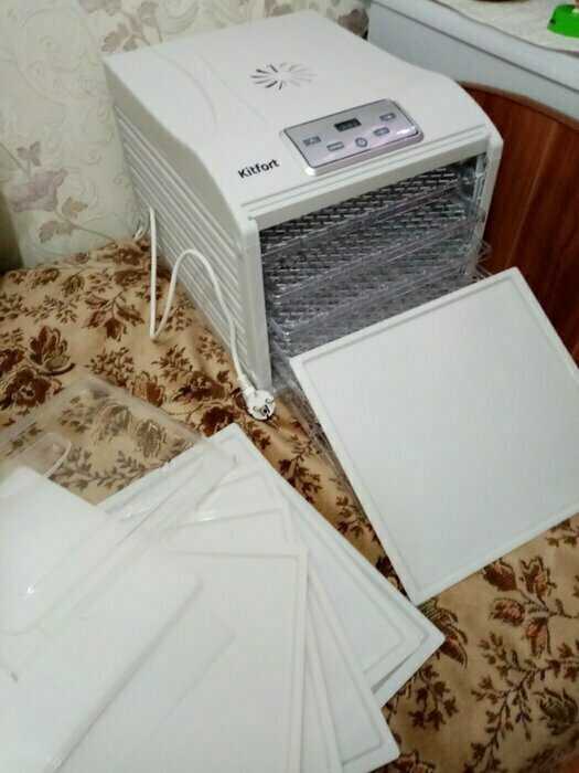 Подарила мужу на день рождения. Теперь не могу остановить его в сушке мяса, рыбы) муж счастлив, угощает всех друзей, а я счастлива, что теперь не одна на кухне обитаю😁 по качеству сушилка отличная! Поддоны достаточно прочные, причём они подходят для разного вида продуктов. Тихая, оставляли даже на ночь. Запаха не было никакого при первом запуске. Уже сушили рыбу, мясо, фрукты. При этом она не пропитывается запахами других продуктов,что не может не радовать! А ещё она белая и впишется в любой интерьер. А то, что я приобрела её по такой шикарной цене, даёт ей ещё 10 звёздочек!