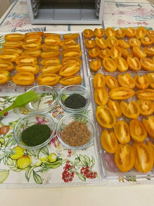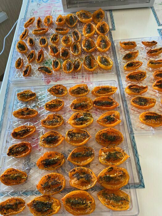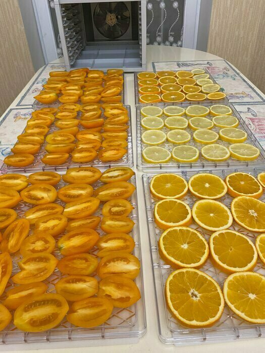 Вместительная сушилка на 6 листов, аналог более большой версии. Качество сушки на высоте. Брал на тест драйв подобную у друга, очень доволен покупкой. Листы легко моются, также комплектация дополняется сетками и листиками для пастилы . Готовлю джерки из мяса, время приготовления 6-7 часов, вяленные томаты вообще вкуснятина. Достаточно ненавязчивый шум, при работе не слышно в другой комнате при открытых дверях. Без запаха пластика.