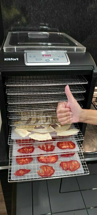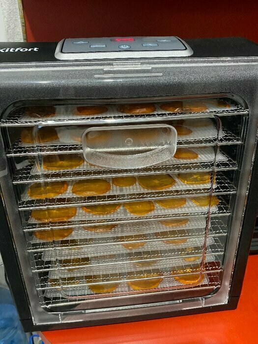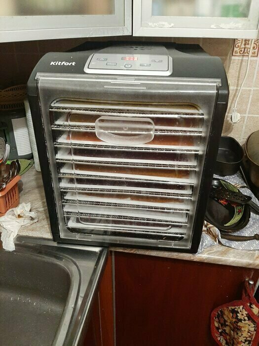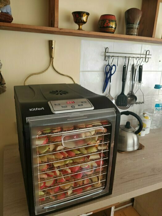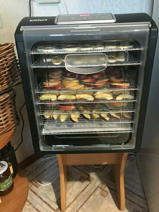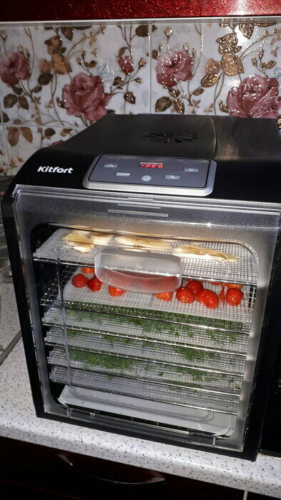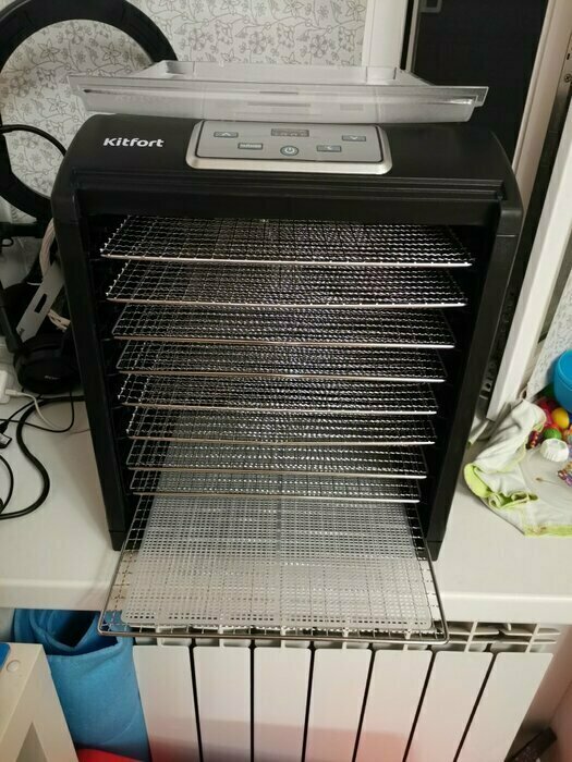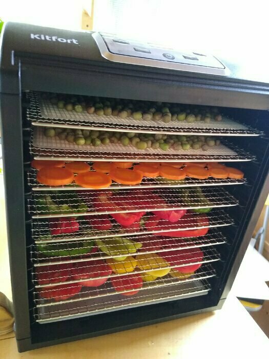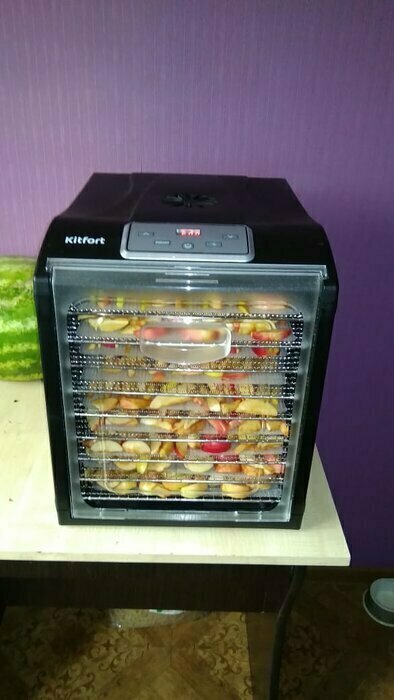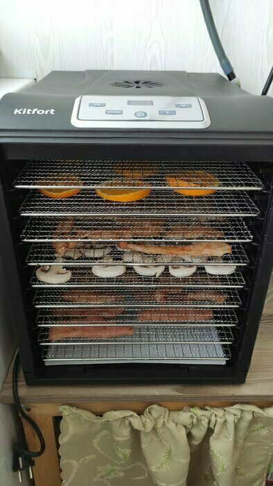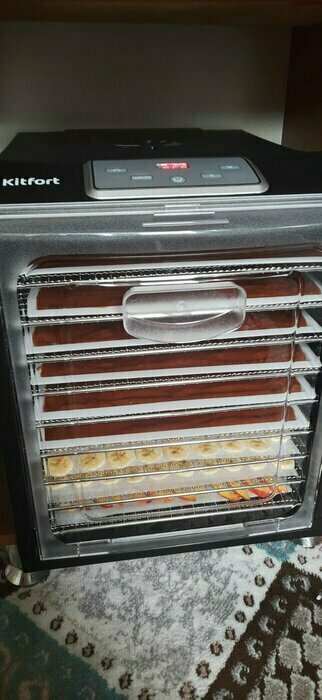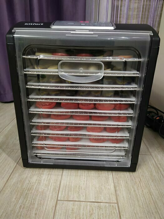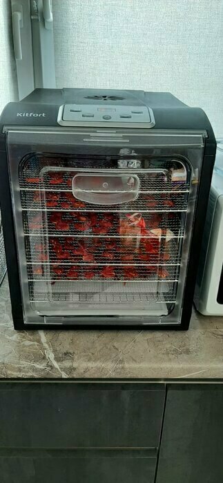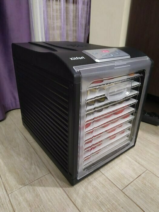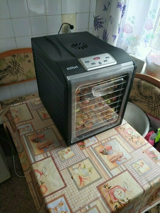 Покупали сушилку для мамы впредверии сезона лето 2021. Она в восторге! Раньше пользовалась стандартной круглой-приходилось менять лотки местами для равномерноой сушки. А тк сушила ночами, соответственно бессонные ночи. С новым шкафом китфорт все эти пролемы ушли!!! Загрузила продукты, выставила программу и спркойно спишь, утром-великолепный результат! Самое основное пожелание было-легкое приготовление фруктово-ягодной пастилы. И шкаф с его дополнительными поддонами справился на 5+!! Удалось все! И вяленые томаты, и пастила, и вяленая слива, и сушеная зелень... Да все! Рекомендуем!