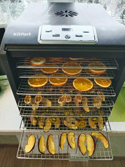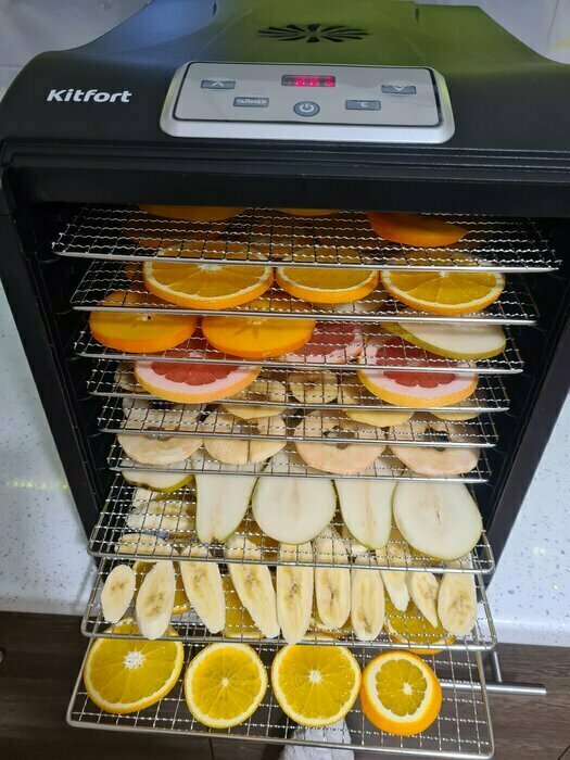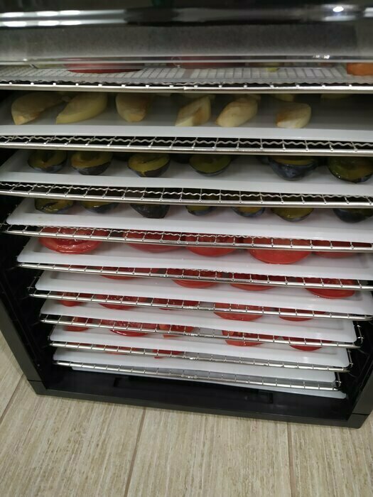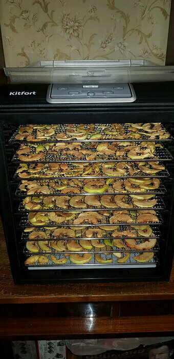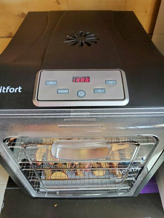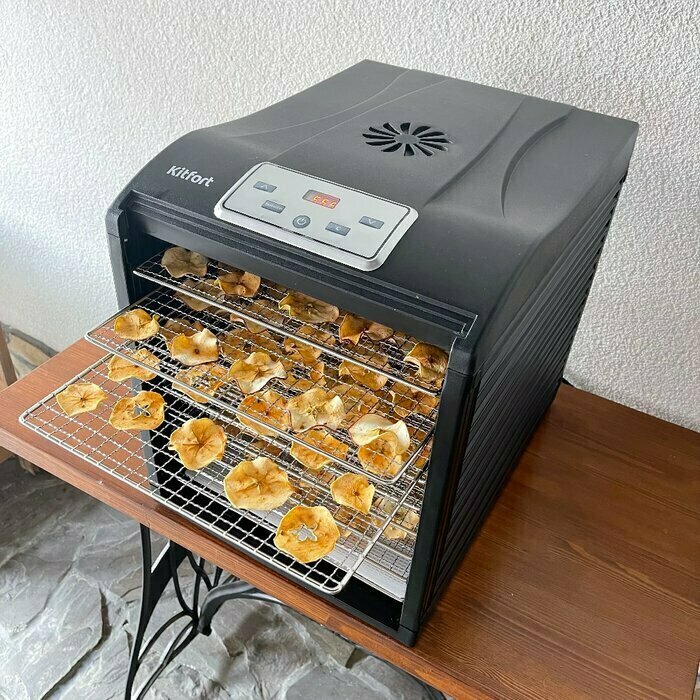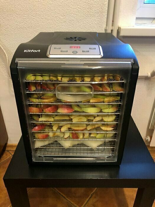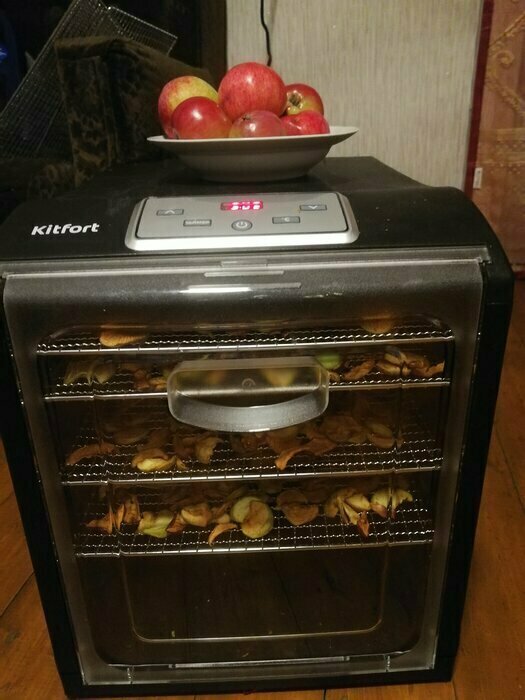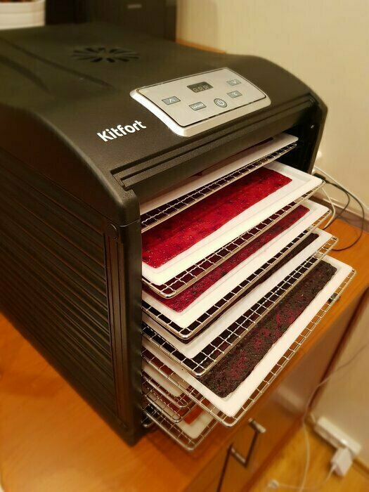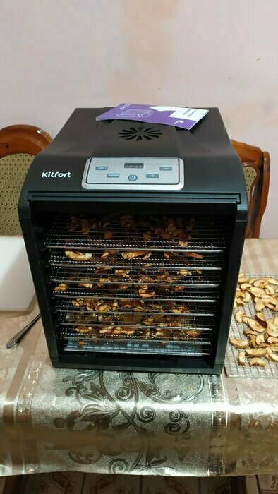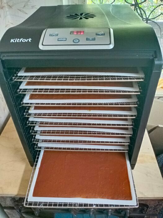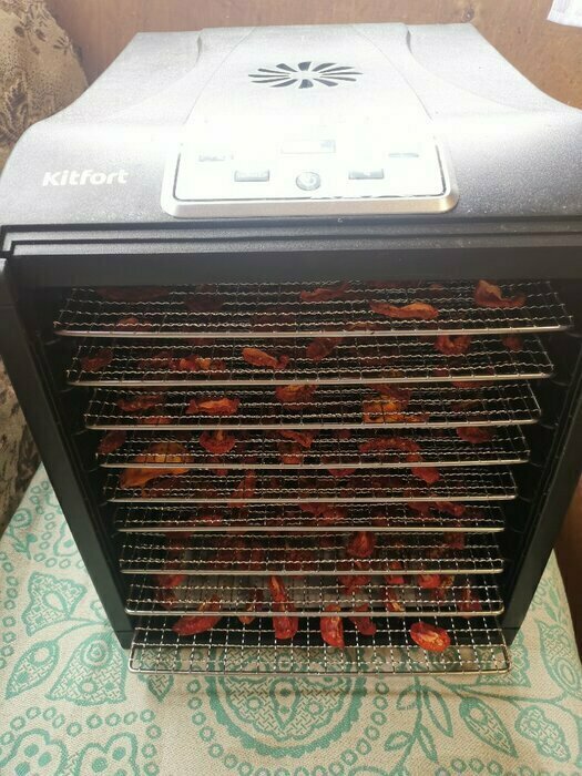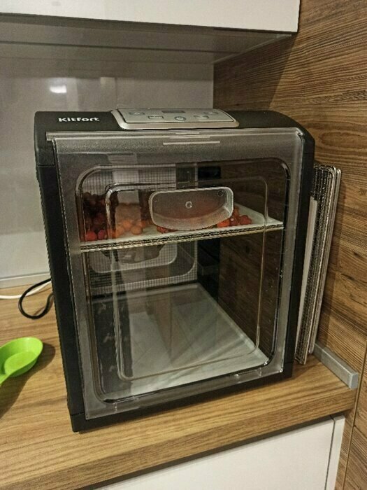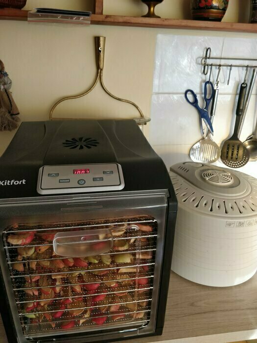 Покупали сушилку для мамы впредверии сезона лето 2021. Она в восторге! Раньше пользовалась стандартной круглой-приходилось менять лотки местами для равномерноой сушки. А тк сушила ночами, соответственно бессонные ночи. С новым шкафом китфорт все эти пролемы ушли!!! Загрузила продукты, выставила программу и спркойно спишь, утром-великолепный результат! Самое основное пожелание было-легкое приготовление фруктово-ягодной пастилы. И шкаф с его дополнительными поддонами справился на 5+!! Удалось все! И вяленые томаты, и пастила, и вяленая слива, и сушеная зелень... Да все! Рекомендуем!