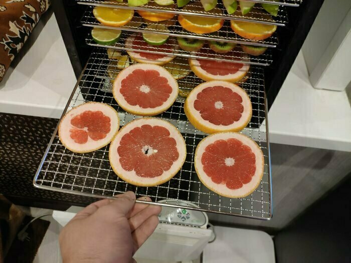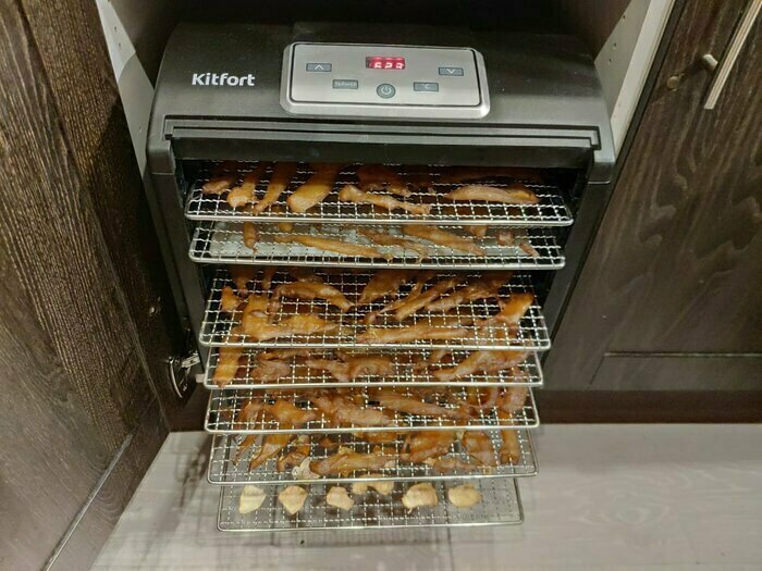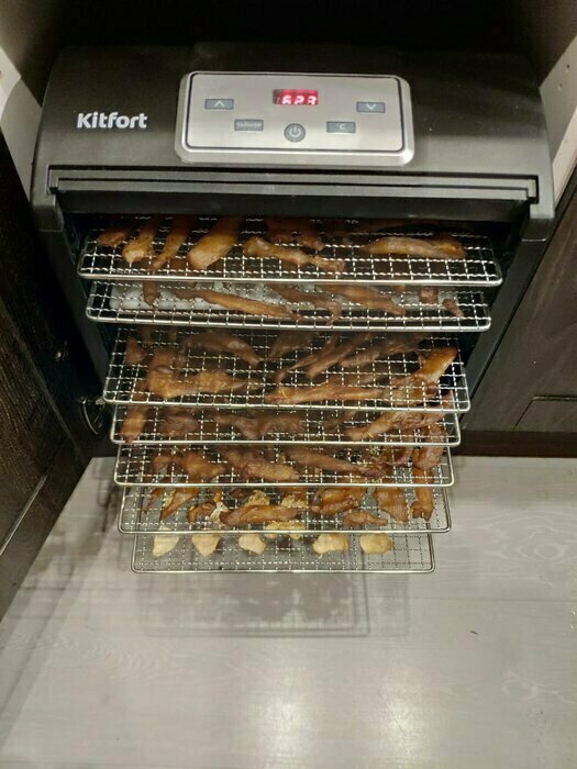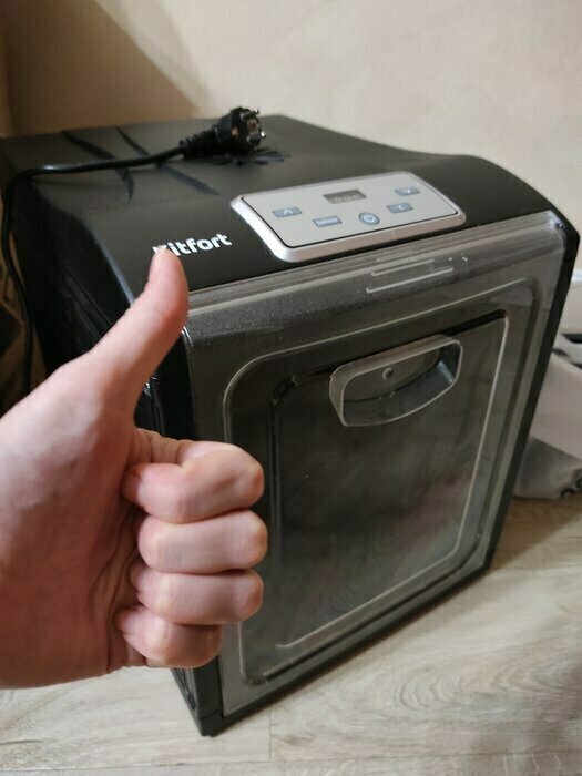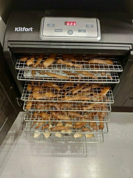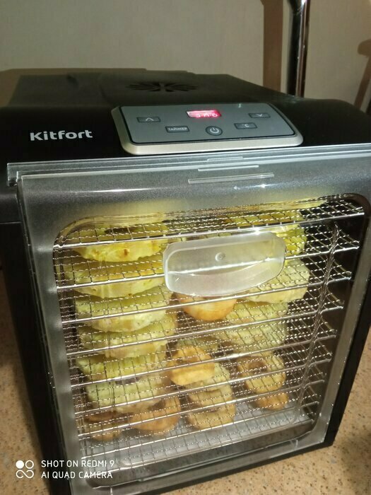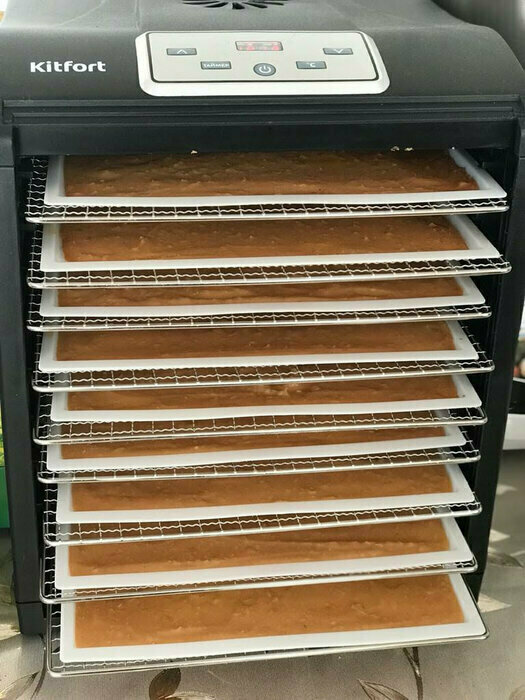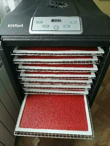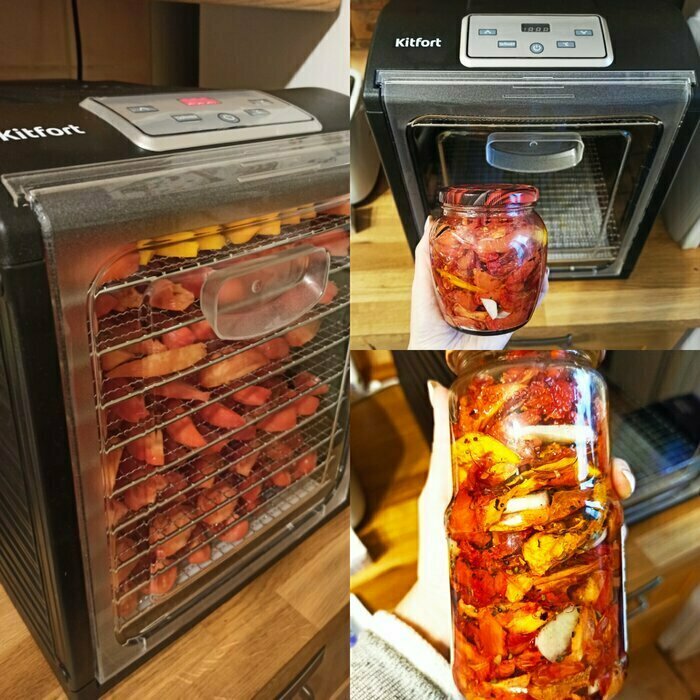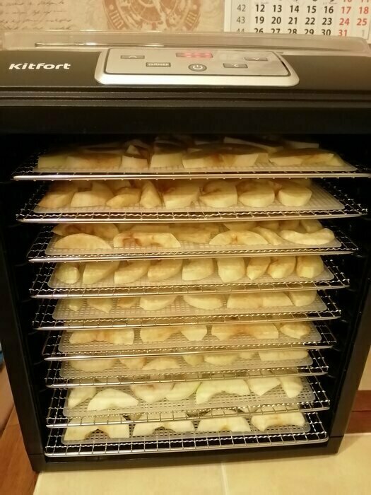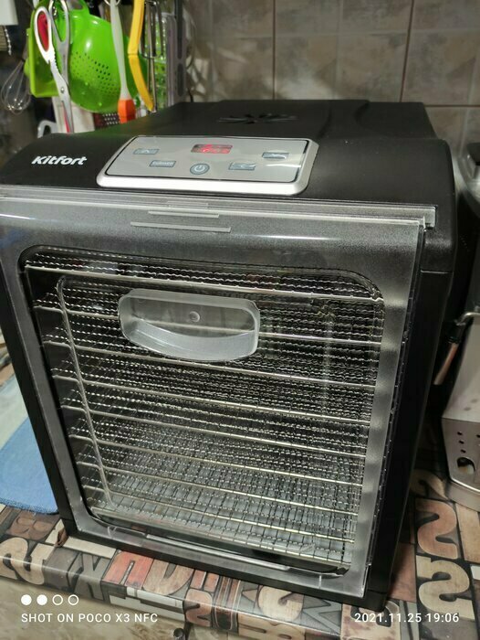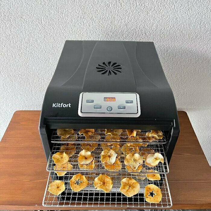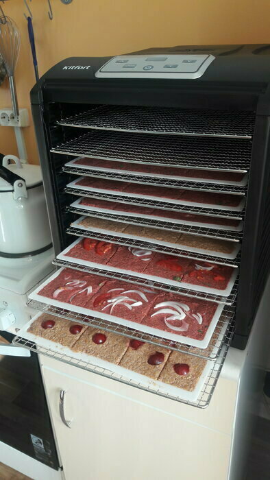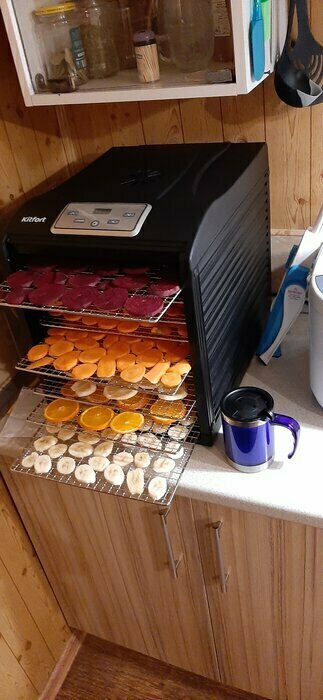 Покупали сушилку для мамы впредверии сезона лето 2021. Она в восторге! Раньше пользовалась стандартной круглой-приходилось менять лотки местами для равномерноой сушки. А тк сушила ночами, соответственно бессонные ночи. С новым шкафом китфорт все эти пролемы ушли!!! Загрузила продукты, выставила программу и спркойно спишь, утром-великолепный результат! Самое основное пожелание было-легкое приготовление фруктово-ягодной пастилы. И шкаф с его дополнительными поддонами справился на 5+!! Удалось все! И вяленые томаты, и пастила, и вяленая слива, и сушеная зелень... Да все! Рекомендуем!