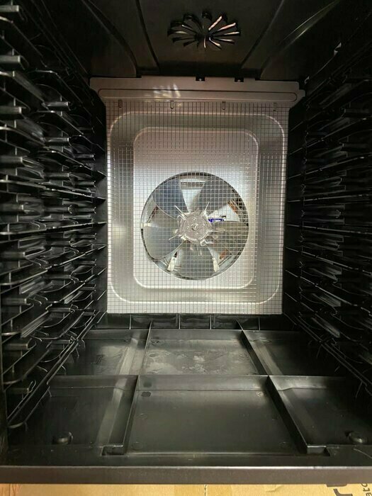 Бесшумная, лёгкая. Самое главное - не надо докупать сетки, поддоны. Их здесь 27 штук. Основные сетки из нержавеющей стали
