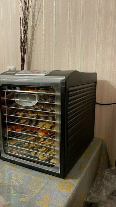 Купили маме в подарок. Пользуется уже более 10 дней, она очень работой техники. Успела высушить тыкву и сделать пастилу. Мы пробовали, получилось очень вкусно