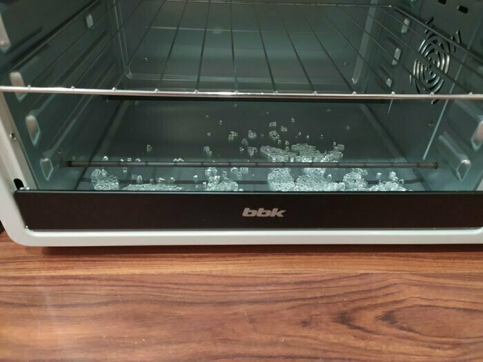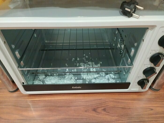 Обидно, когда всё делаешь по инструкции. При первоначальном прогревании на температуре 180 градусов на седьмой минуте хлопает стекло. Куплена в подарок. Досадно. Стекло, судя по всему, далеко не калёное.