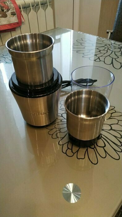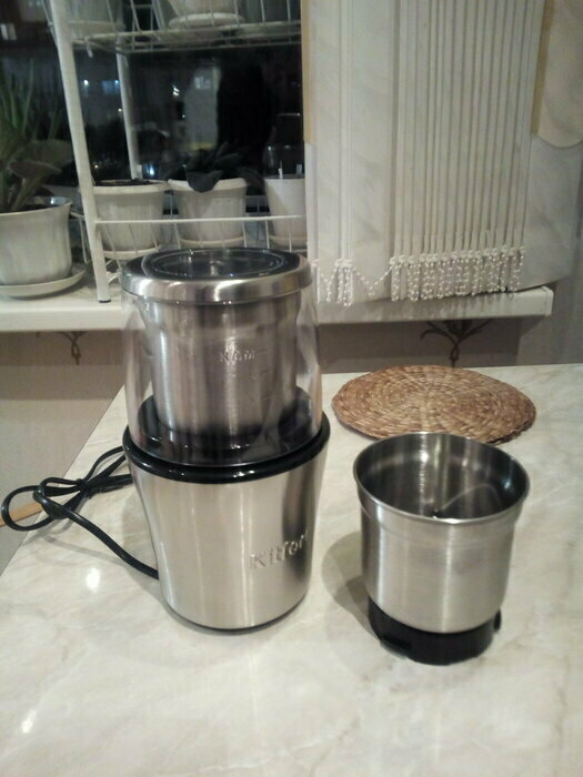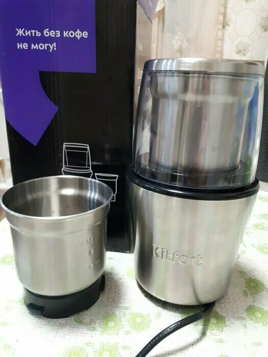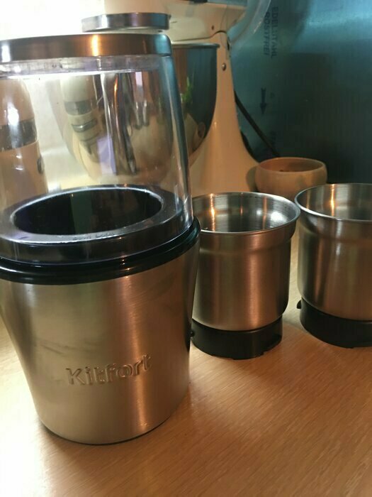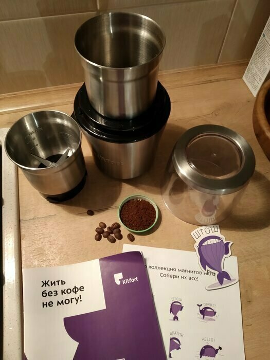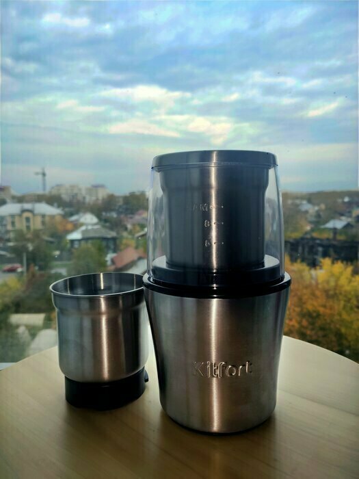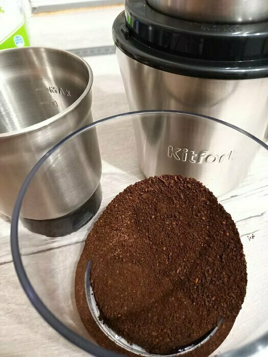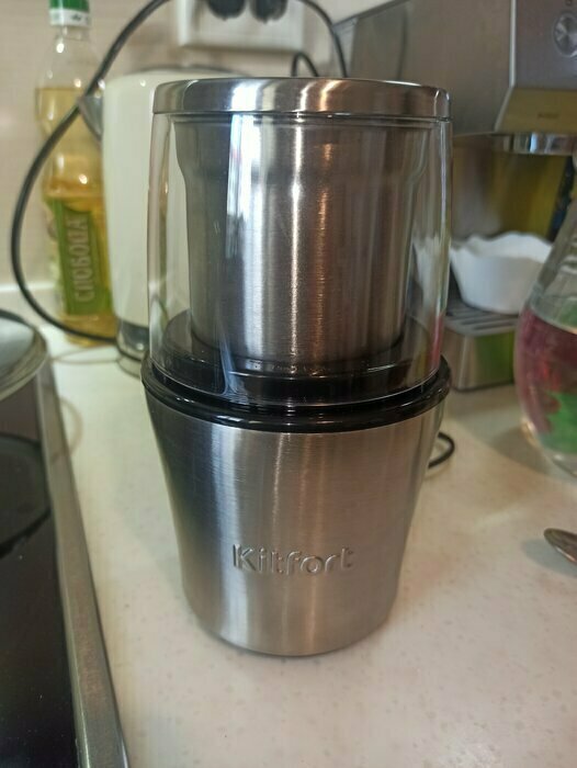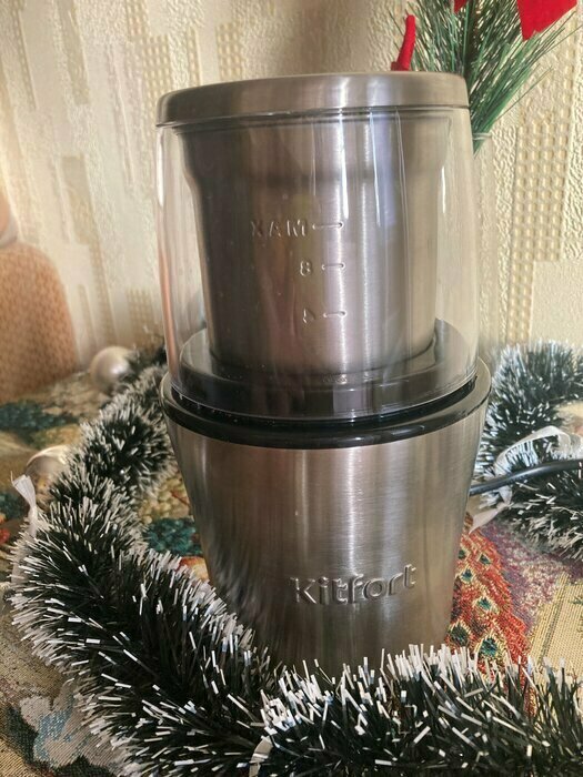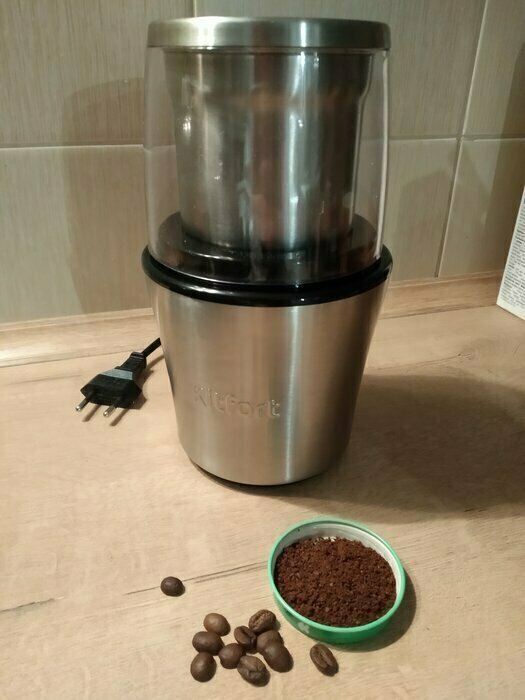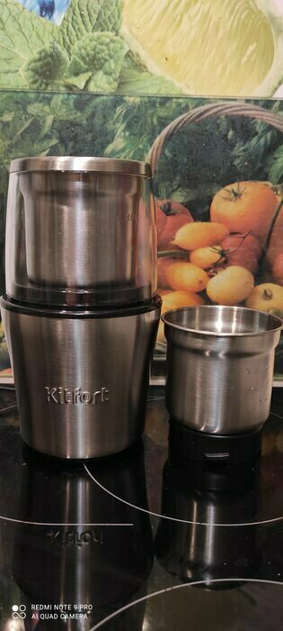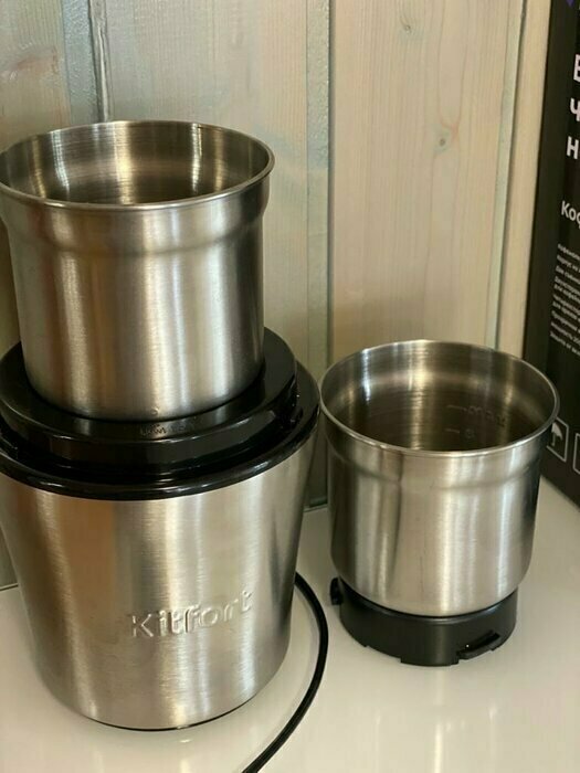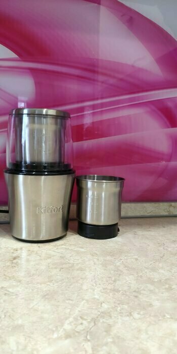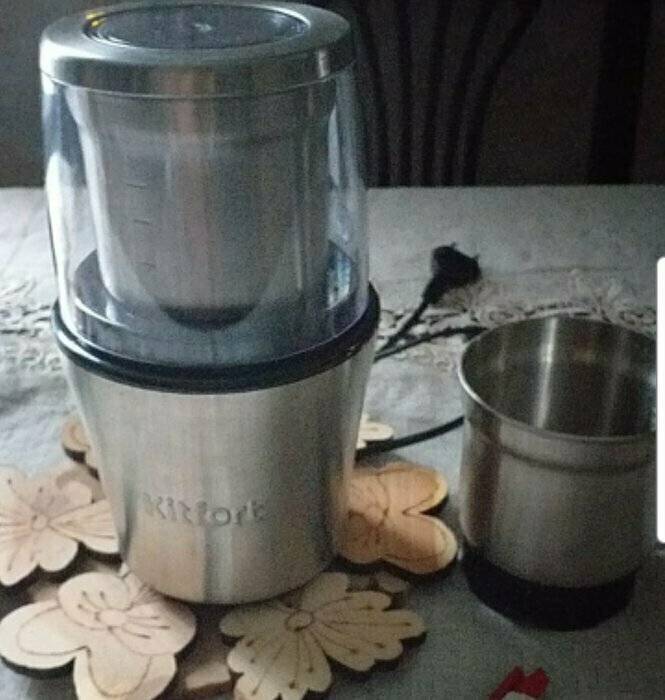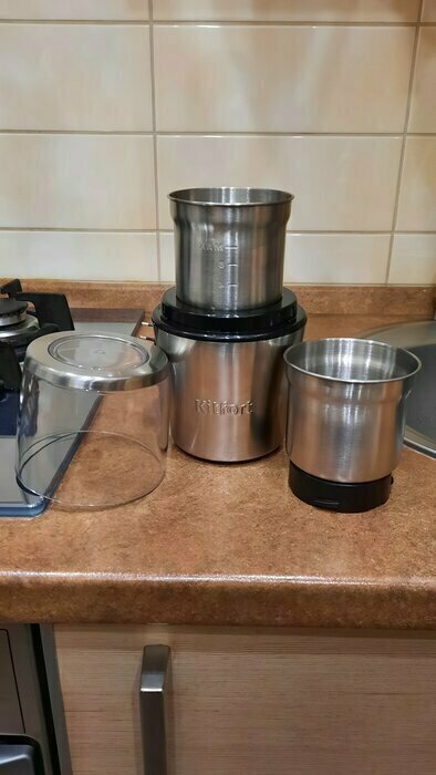 Долго изучала какую взять кофемолку, задача не только кофейные зерна молоть, но и орехи, специи. Выбрала фирму Kitfort. Очень солидная и стильная вещь. Когда получила очень удивилась размерам, так как предыдущая просто малышка. Круто, что два разных стакана для измельчения разных продуктов. Измельчает качественно, все как нужно.