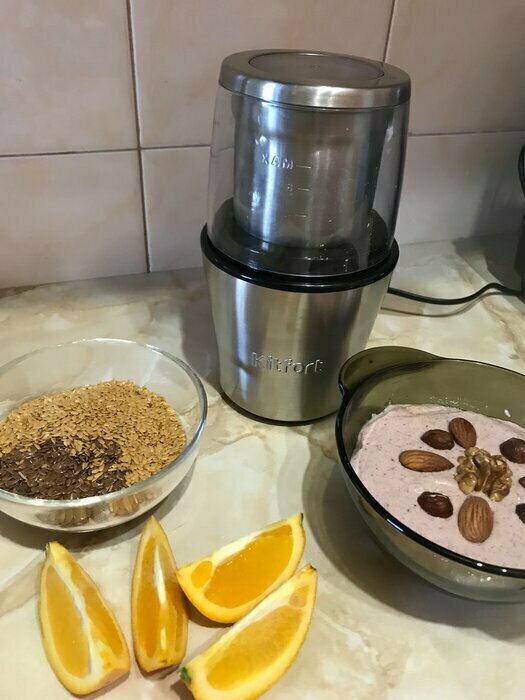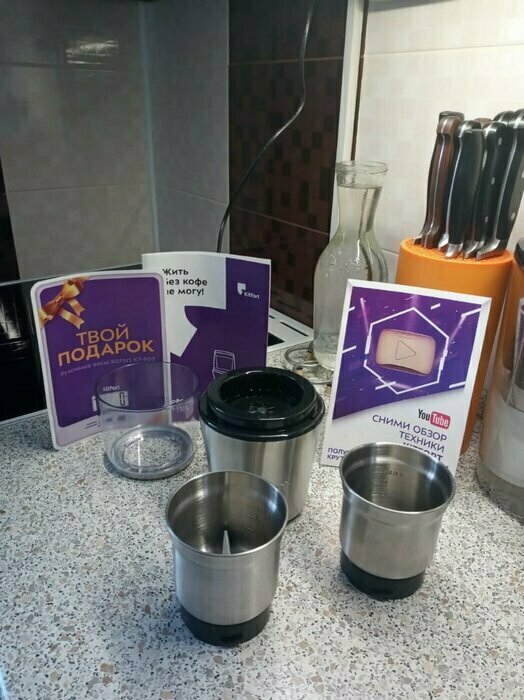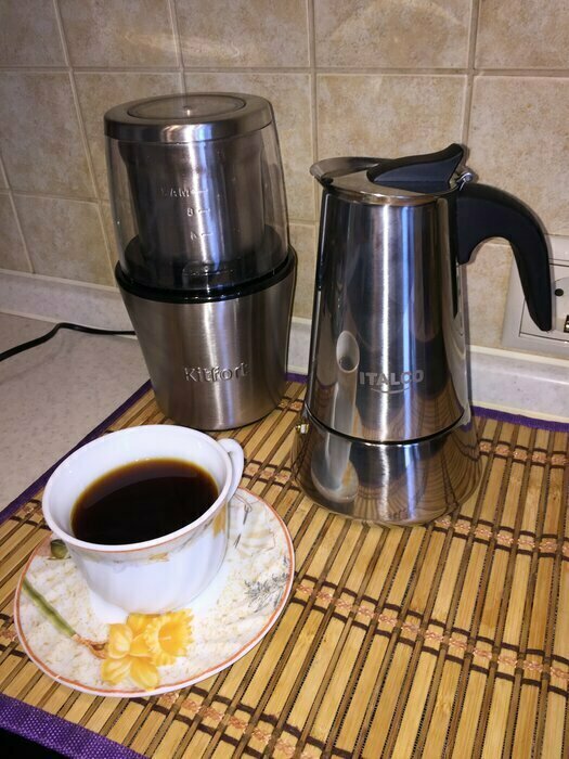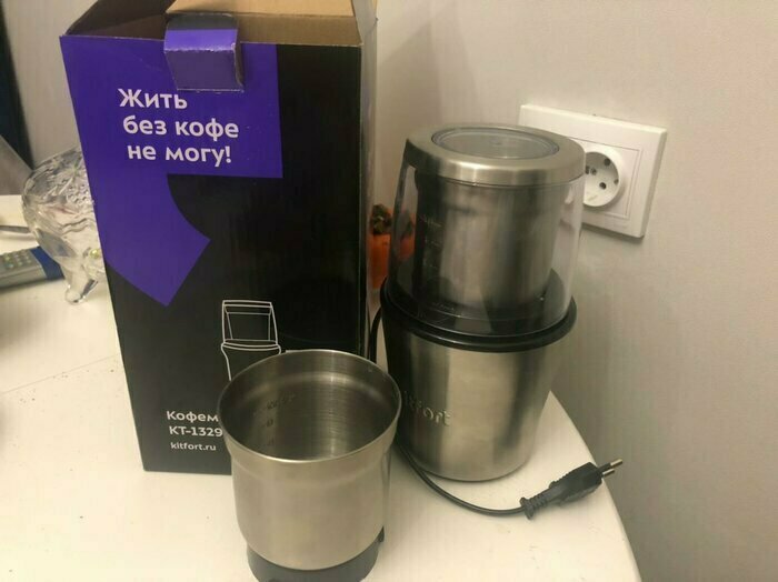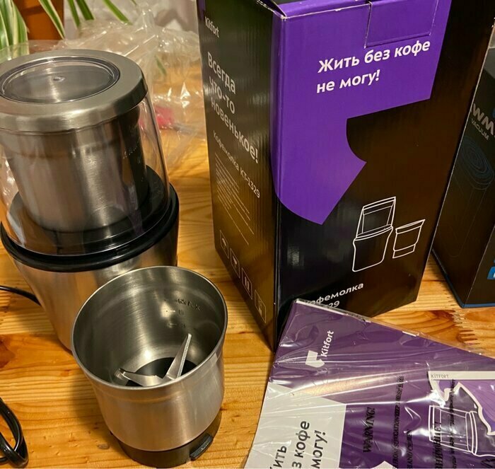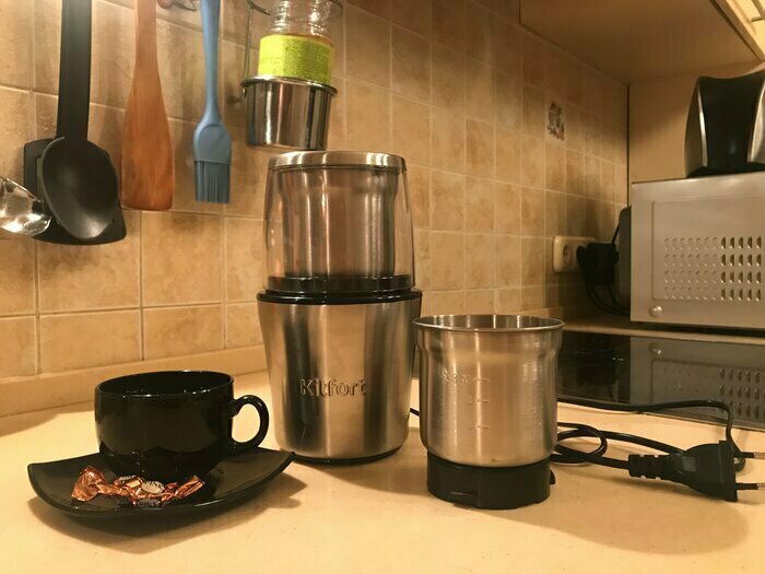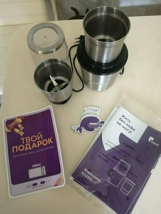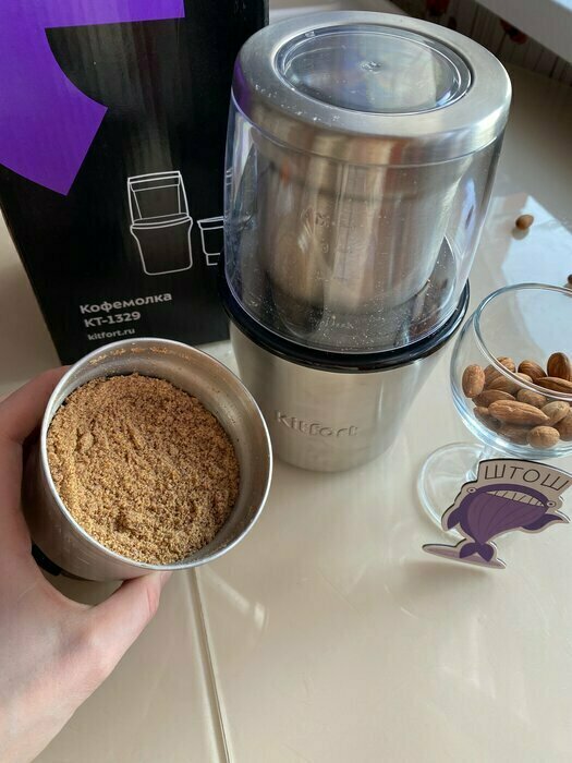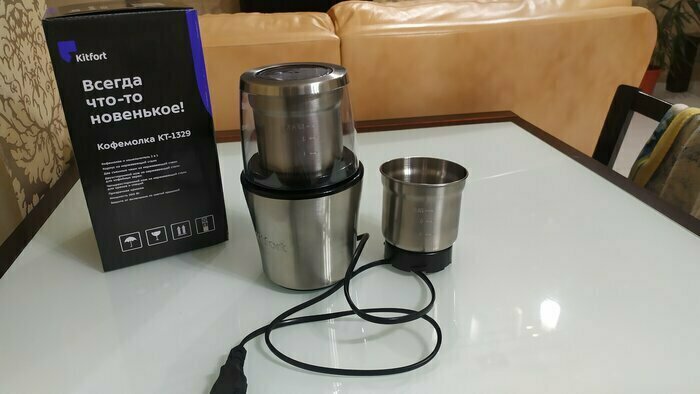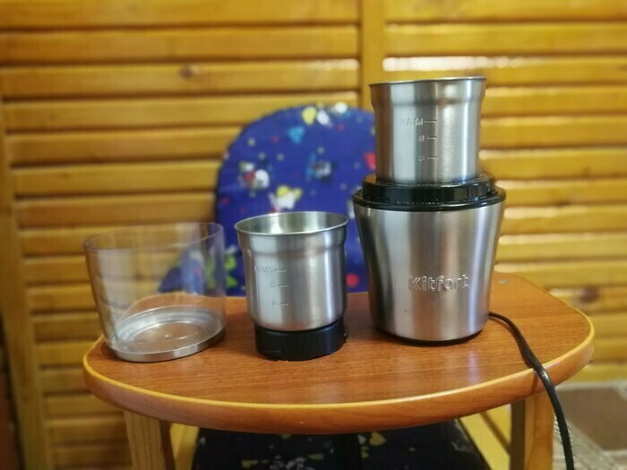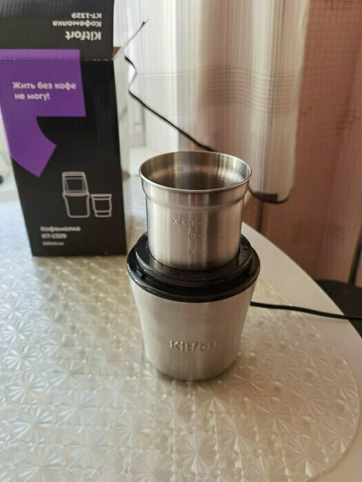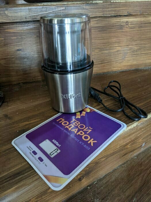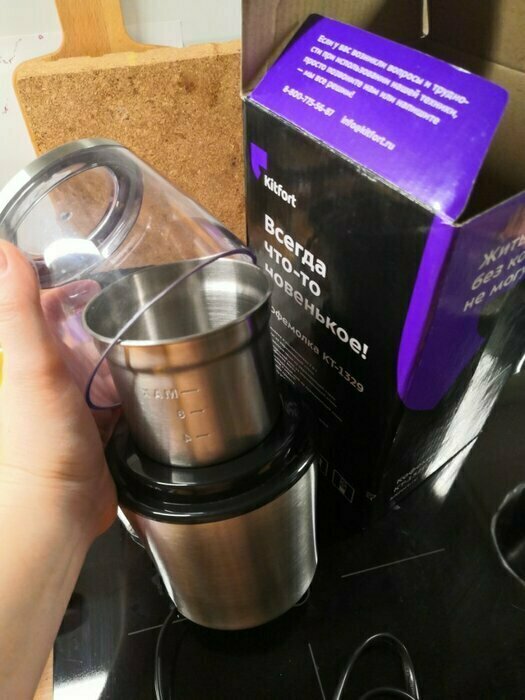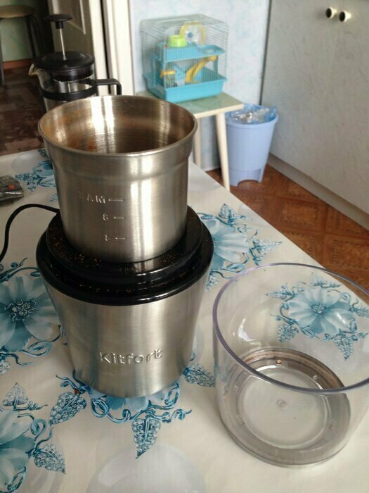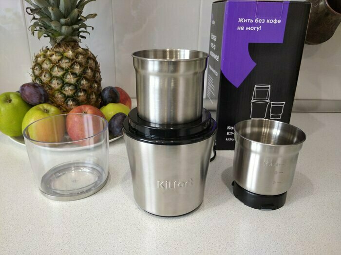 Долго изучала какую взять кофемолку, задача не только кофейные зерна молоть, но и орехи, специи. Выбрала фирму Kitfort. Очень солидная и стильная вещь. Когда получила очень удивилась размерам, так как предыдущая просто малышка. Круто, что два разных стакана для измельчения разных продуктов. Измельчает качественно, все как нужно.