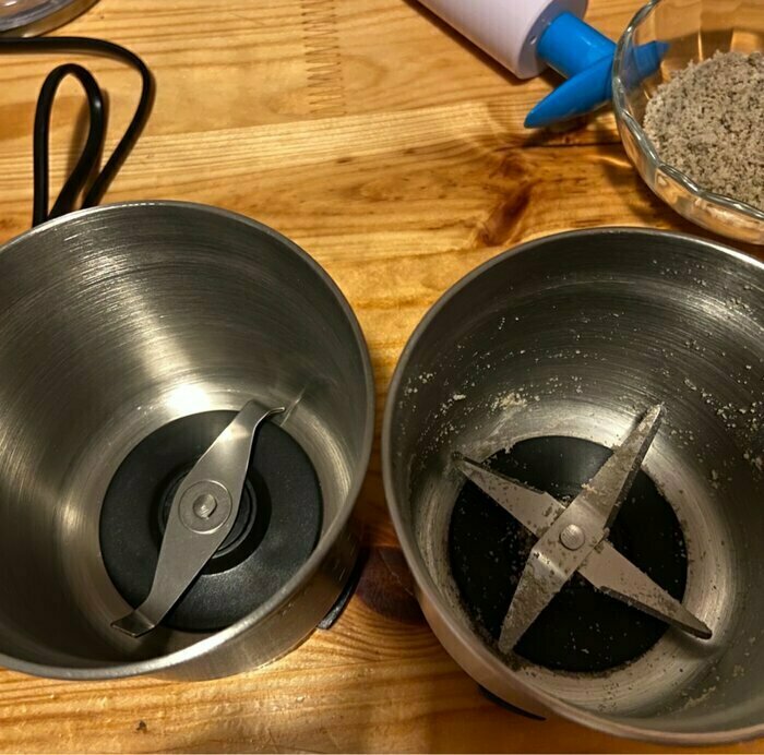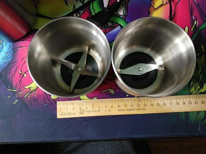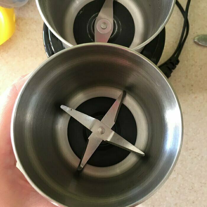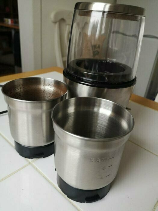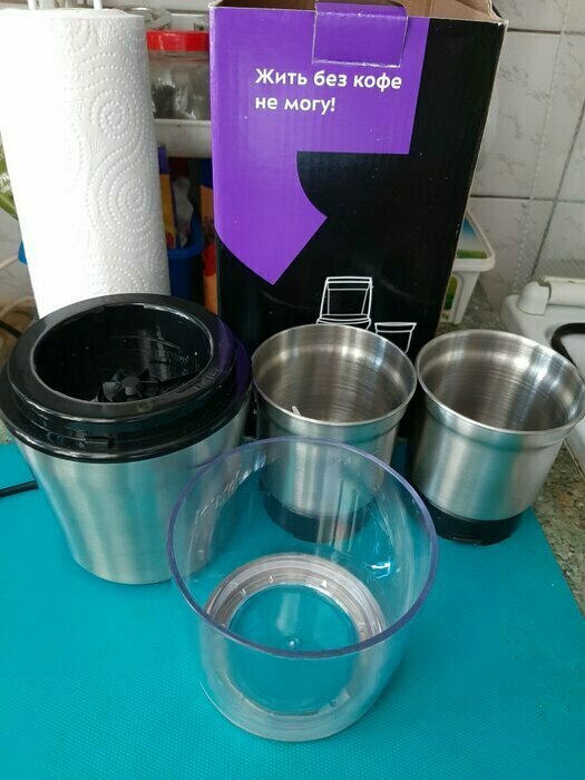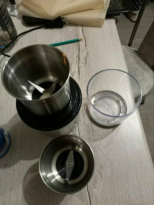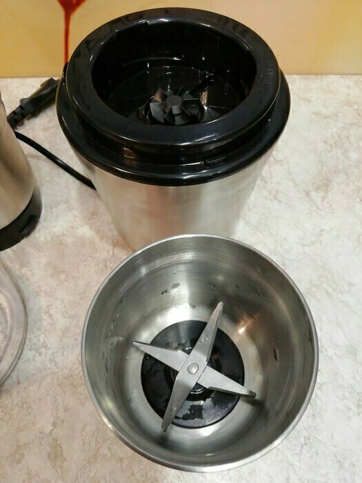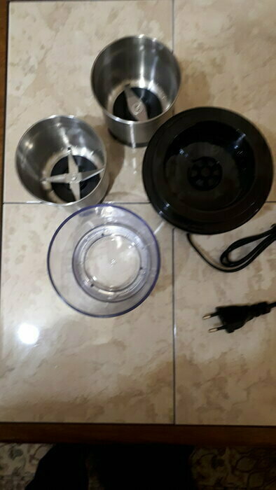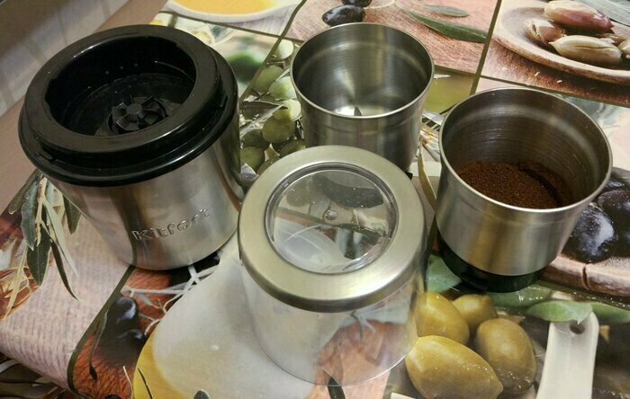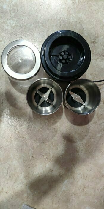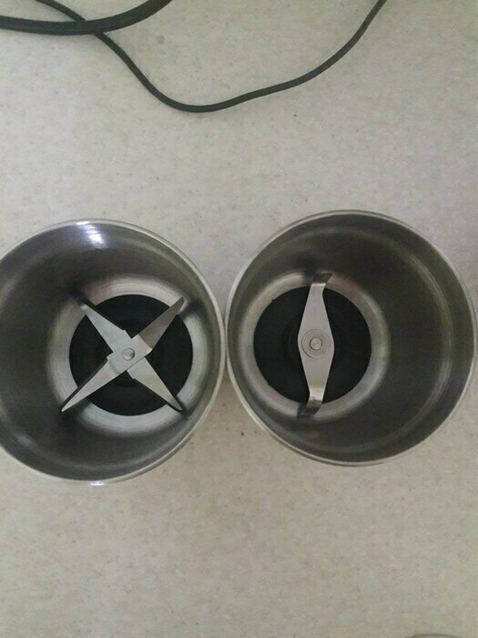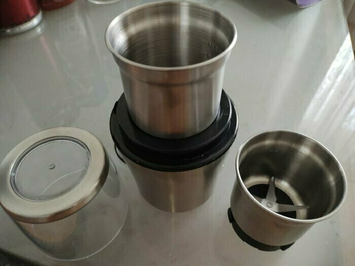 2 Вместительные чаши под кофе и специи, что необходимо человеку, который измельчает не только кофе!Приятная цена. Достаточно мощная. Уже протестировали на кофе, специях, орехах все молит на ура! Удобно мыть, ножи снимаются, потому что обычно под ними застревают частички продуктов, тут же такого нет
