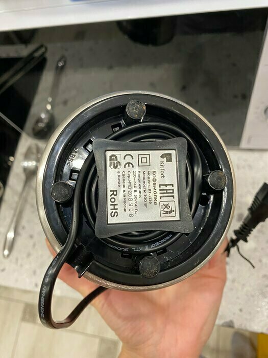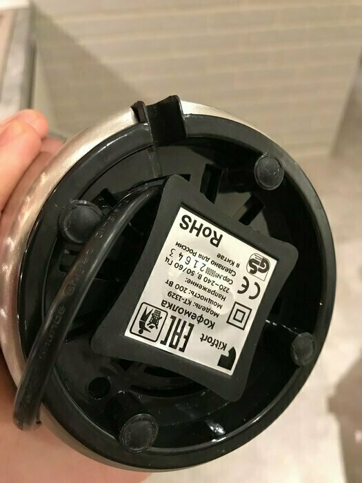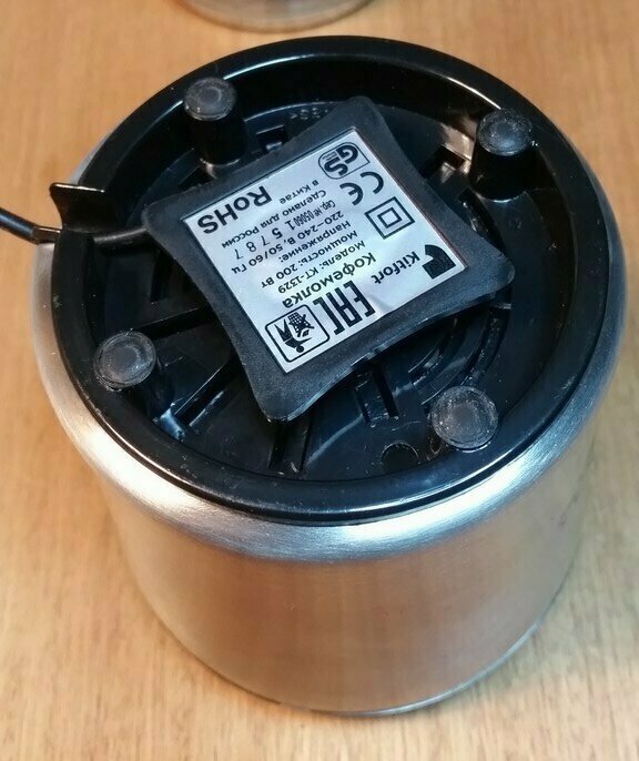 Катушка для наматывания провода на дне кофемолки сделана странно. Шнур нельзя до конца намотать так, чтобы не мешался. При использовании провод из паза постоянно выпадает, и никак там не крепится, пришлось закрепить его отдельно хомутиком.