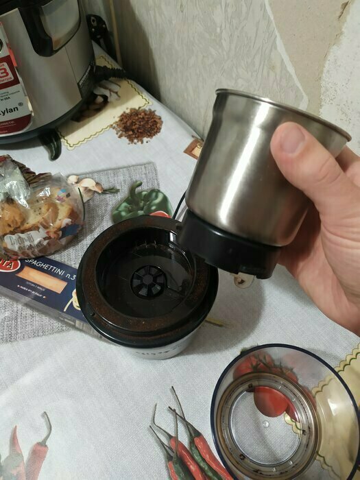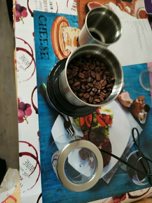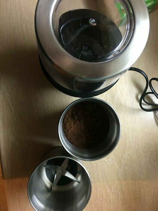 Измельчает на ура. Мололи кофе, причем очень часто это делаем, все отлично. Молола печенье и орехи, тоже все замечательно. Работает отлично, со своей задачей хорошо справляется. Классно, что есть две чаши, удобно. Кофемолка компактная. Моется легко.