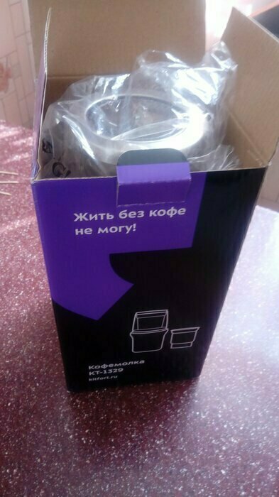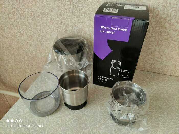 Заказал в Яндекс маркете кофемолку, обещали прислать через 5 дней, пришла через 3 дня. Коробка упакована в стрейч плёнку. Товар качественный. Есть две емкости: одна для помола кофе, другая для овощей, орехов, зелени и т.д. Всем доволен, рекомендую.