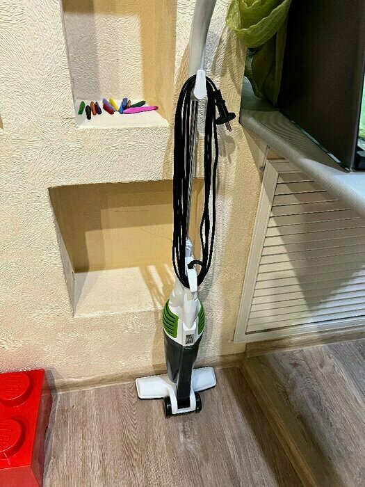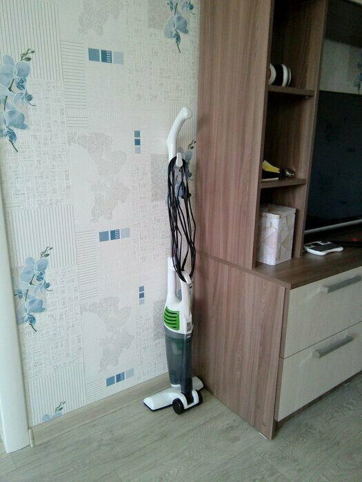 Первый опыт покупки вертикального пылесоса. Компактный, смотрится стильно, собран достаточно качественно. Пылесосила ленолиум и ковер с коротким ворсом, справился на ура. Для повседневной уборки, собрать шесть животных, крошки и песок с улицы самое то. Пахнет пластиком, хотя сам корпус не нагревается при работе, может со временем запах уйдет. Надеюсь прослужит заявленный срок