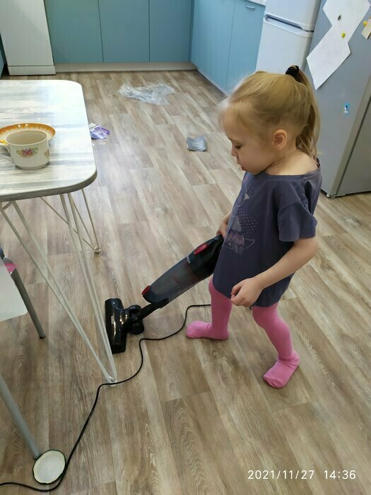 Отличный пылесос купили более месяца назад. Удобный пылесборник, длинный шнур. Для повседневной уборки - самое то. Покупаем уже второй такой - очень довольны.