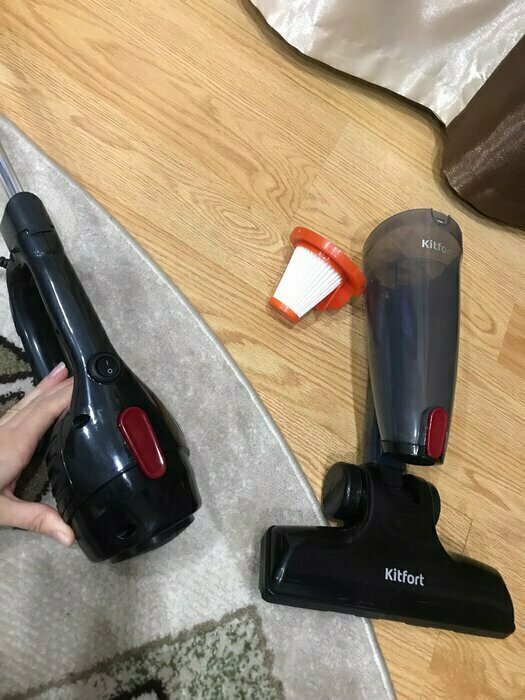 Очень удобный! Размер небольшой, очень компактный, но, тем не менее, достаточно мощный. Легко пользоваться и после уборки чистить и мыть контейнер. С шерстью собаки и кошки справляется на ура. Шнур бы подлиннее, чтобы не нужно было переключать при смене комнаты , но это не критично. Китфорт как всегда радует, закажу такой же сыну :)