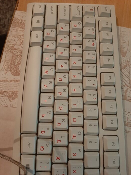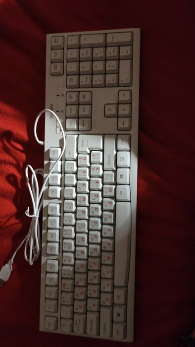 Стандартная клавиатура с контрастными буквами, что очень важно! Почему то сейчас, очень сложно найти белую с красными и черными буквами