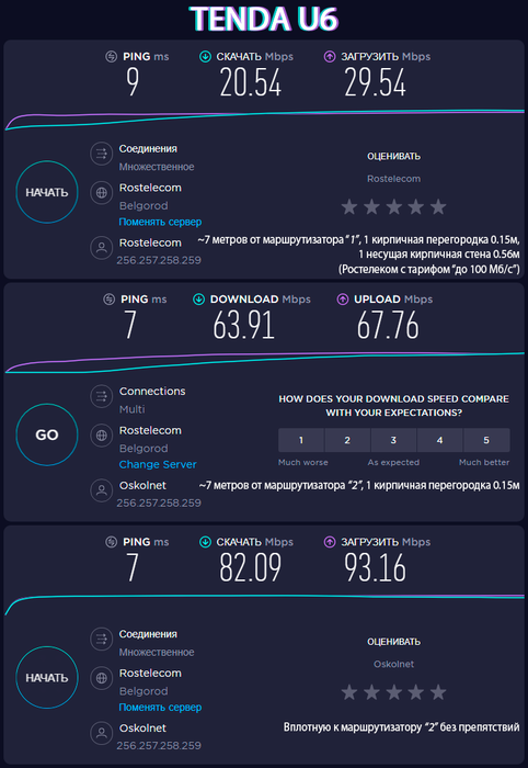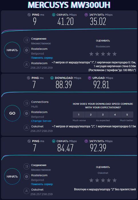 Через полуметровую стену на расстоянии 18 метров максимальная скорость скачивания 8мб/с через торрент. Просмотр видео в качестве 2К без приседаний. Онлайн игры пока не пробовал, но думаю тоже побегут.