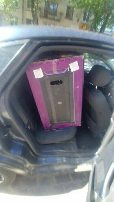 - вес. Это не недостаток, но уж очень много на это обращают внимание. И это действительно нюанс, который не послужит аргументом "ЗА". 22 кг не каждый захочет таскать. А в коробке он вообще огромный. Влез в машину почти скрипя (см.фото). - крышки. Тут тоже не недостаток, а нюанс. Передняя пластиковая крышка на магнитах и ей очень удобно пользоваться, но нужно помнить, что это пластик, чтобы не шлёпнуть ей на ходу, рискуя отломать пластиковые направляющие. Задняя накладка держится очень хлипенько и не понятно её назначение. Никакой функции она не несёт, кроме эстетической. При этом, если вы захотите снять боковое стекло, то её нужно будет отстёгивать, иначе она отвалится сама. А т.к. это тоже пластик, легко может куда-нибудь упасть, попасть и хрупнуть вполне легко. - не фиксируются крышки. Бока у корпуса на магнитах, поэтому при переносе могут отстегнуться, при этом держаться довольно хорошо. Хотя я с таким ни разу ещё не столкнулся. Во-первых, потому что нафига таскать комп?)) А во-вторых, когда ты его тащишь,
