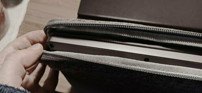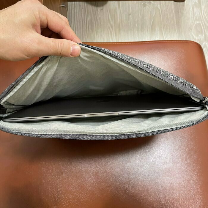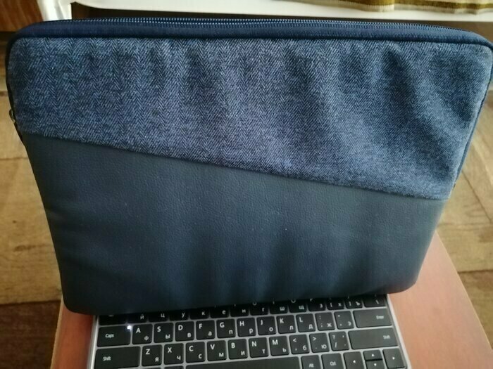 Вживую выглядит отлично. В руках ощущается плотным, добротные внутренние вставки хорошо держат форму чехла и защитят устройство внутри. Чехол внутри отделан светлой-бежевой тканью, выглядит очень приятно и премиально. Сшито все ровненько, молния идет мягко и легко. По размеру: для ультрабука 32 ширина и 21 длина подошел идеально! Большое спасибо Риве за отличное изделие по доступной цене.