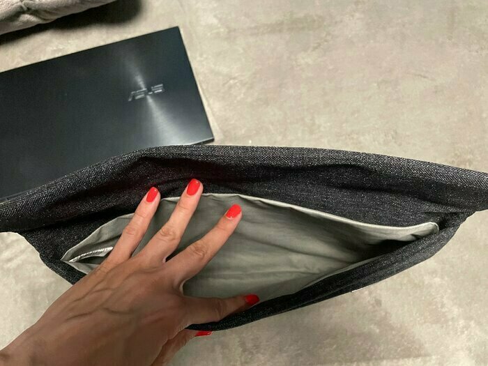 Купила для asus zenbook 14. В чехол хорошо поместился, не болтается. Есть 2 доп. кармана для проводов, тонкой мышки.