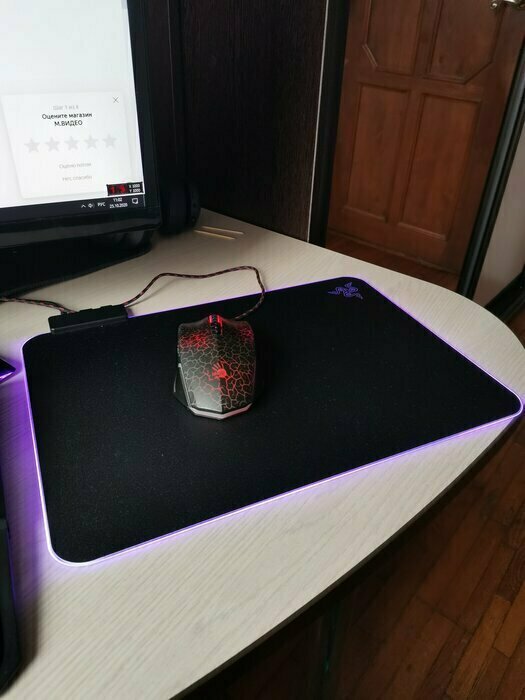 По нему очень хорошо скользит мышка,он не пачкается в отличии от тряпичных,ну и конечно подсветка она божественна.