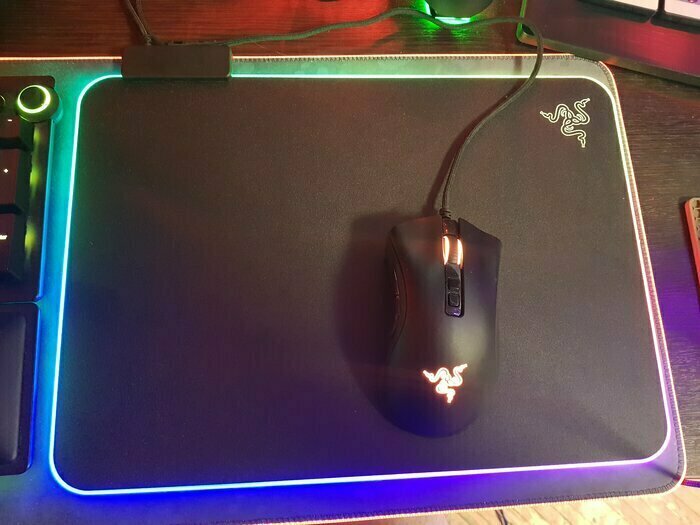 качественный игровой коврик, в дополнение в клавиатуре и мыши razer