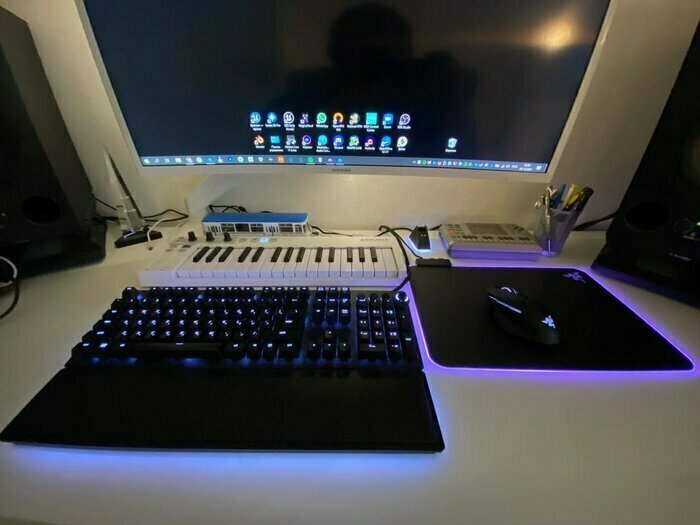 Подсветка не умеет в чисто белый цвет, притом, что Chroma назначает его на все устройства, коврик все равно отдает в сиреневый (на фото хорошо заметно), при установке других цветов разница не так бросается в глаза.