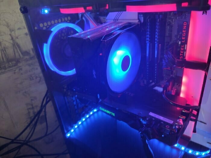 Красивый, тихий светящийся кулер. Подсветка синхронизируется с подсветкой материнской платы. Эстетично, красиво, охлаждает хорошо.