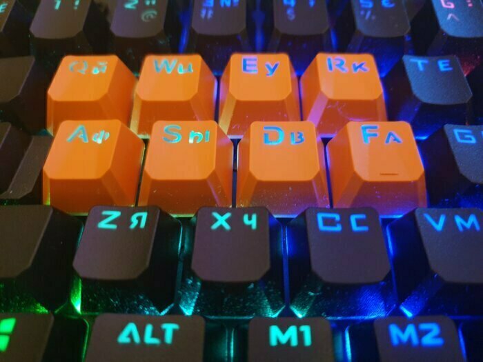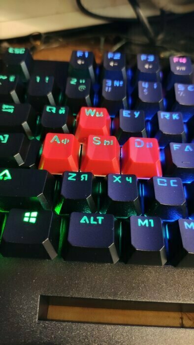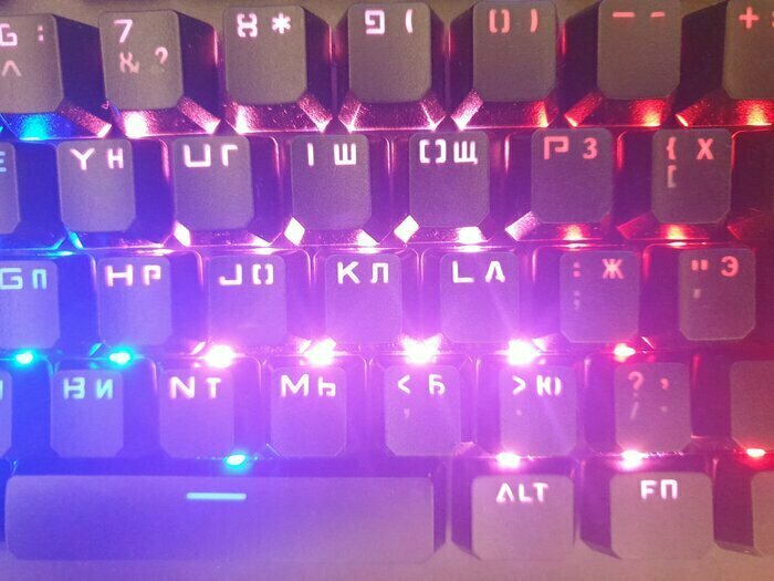 -Короткий пробел(?) -ОЧЕНЬ громкий звук нажатия. Не ожидал что будет так громко -Подсветка регулируется только тремя режимами свечения, изменить подсветку отдельных клавиш нельзя.