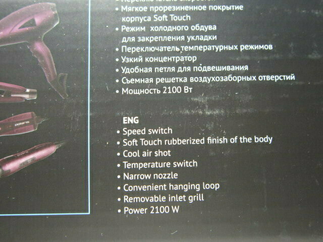 Начать хочется с того, что пользуюсь этим феном в основном не я, а моя девушка. Ей очень понравился. Отличный фен, соответствует своим характеристикам. Легкий, не шумный, сушит быстро, приятное покрытие, товаром довольны!