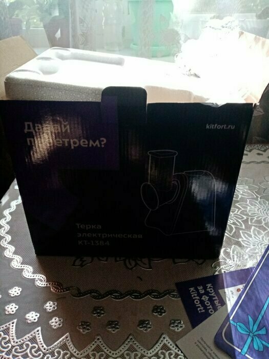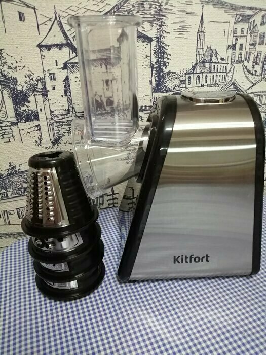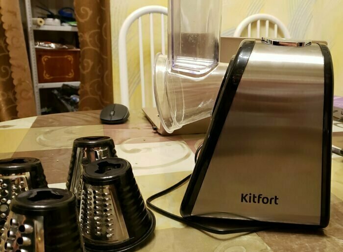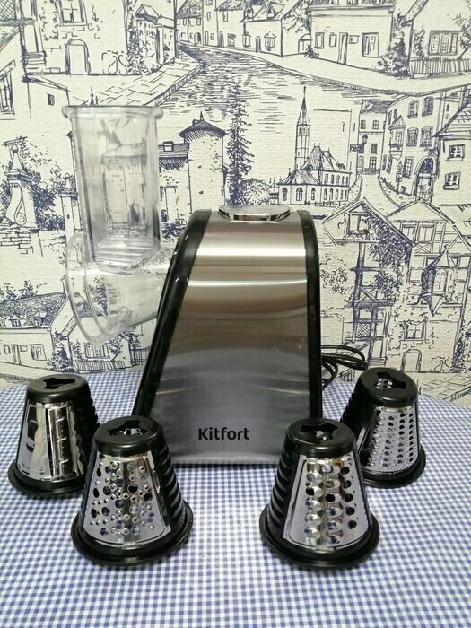 Купила за 3,5к. Есть 4 насадки, морковь и сыр трет хорошо. Провод длинный, удобно. Расцветка универсальная, отпечатки пальцев не видно. Шумит, но за такую цену норм. Теперь не будут вставать руки, тересть вручную))) Упаковка надёжная, всё в пакетиках и в пенопласте. В комплекте много мукулатуры, и гарантийка. А так же обязательно магнитик с китом) мелочь, а приятно)