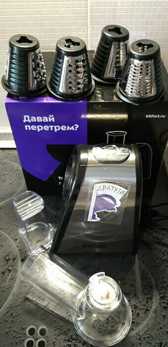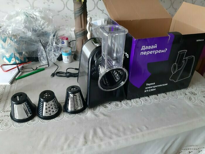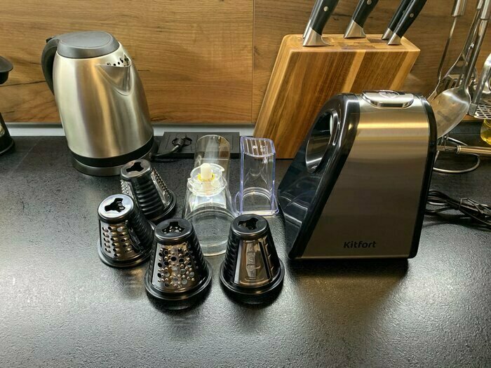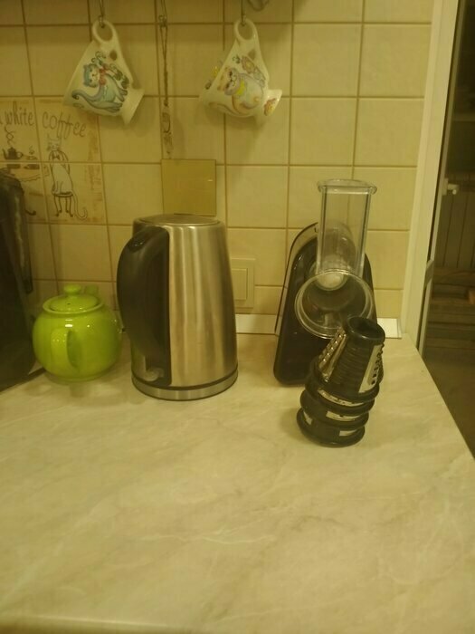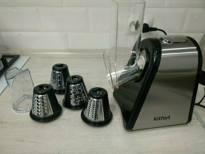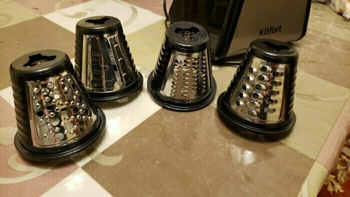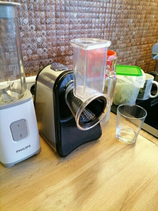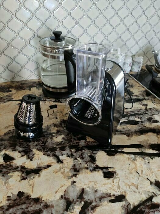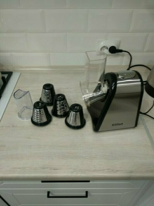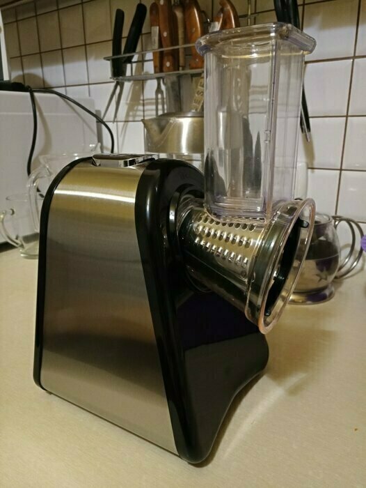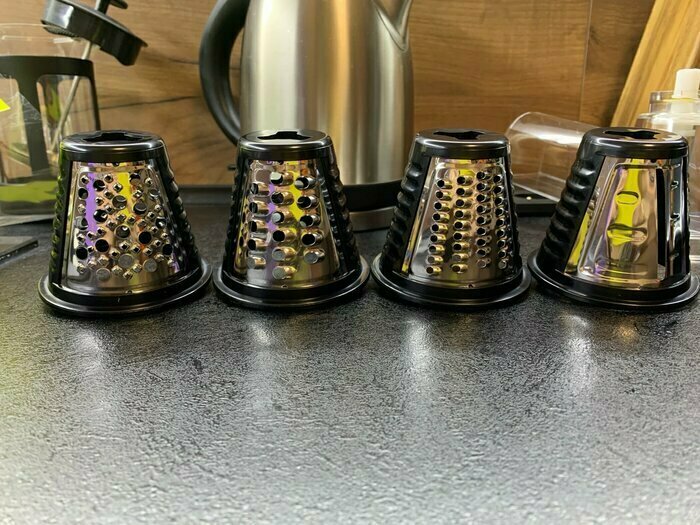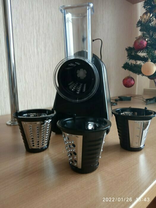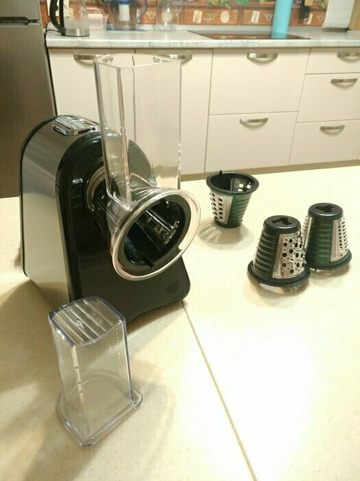 Очень довольна покупкой , терка шустро выполняет свою работу, в комплекте самые ходовые насадки , больше и не надо. Стильный и современный помощник на кухне , рекомендую к покупке