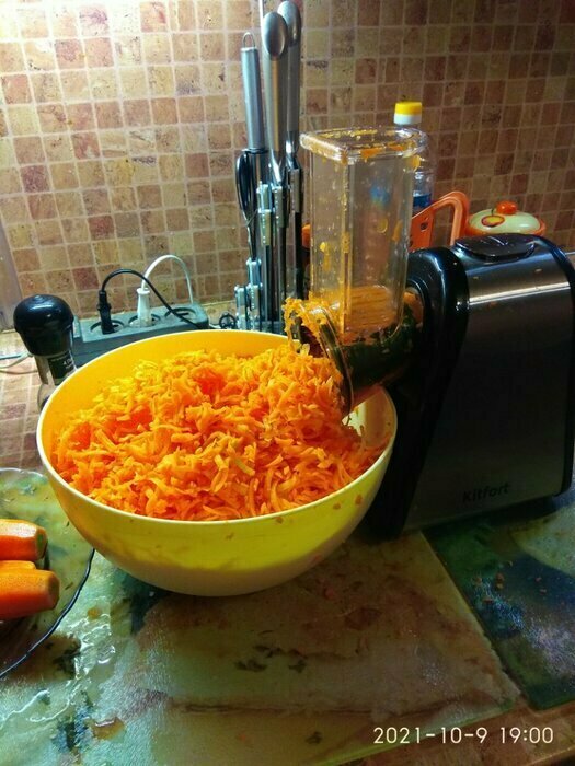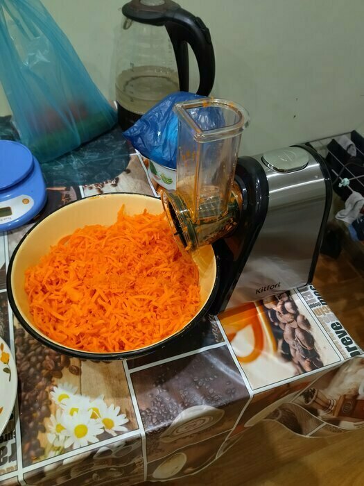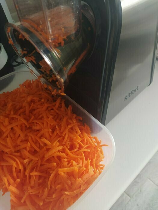 Поставил четыре звезды так как слишком шумный но главная причина морковь трет не до конца когда остается совсем чуть-чуть то он попадает в терку и крутиться вместе с ней