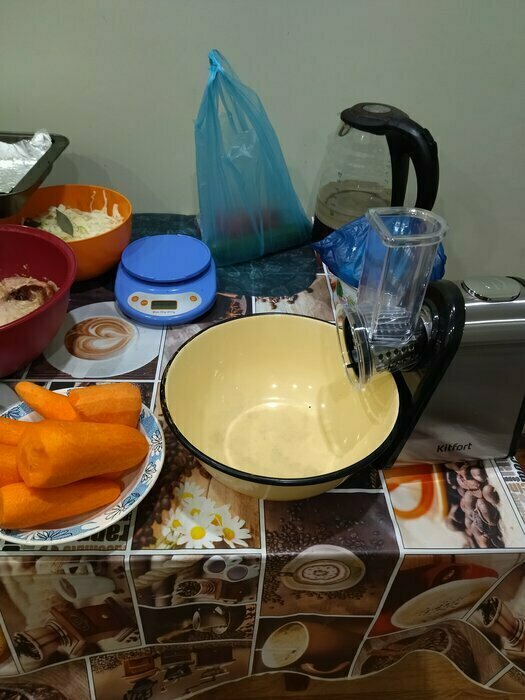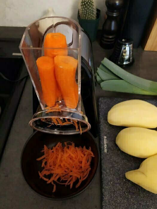 хрупкая конструкция, морковкой надавил и она все прогибается....да ещё и кнопку надо все время держать рукой, чтобы она работала....в общем не очень удобно, но лучше, чем просто ручная терка))