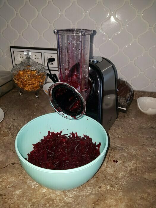 Пользуемся уже месяц, и могу с уверенностью сказать, что это очень хороший помощник на кухне! Пробовали натирать морковь, свеклу, капусту, огурцы - справился замечательно. В целом довольна покупкой.