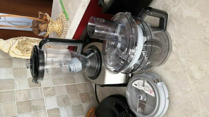 Пришло время заменить свой старый комбайн Bosch который отслужил 9лет. Учитывая прошлый опыт решил с маркой не экспериментировать и выбрал опять Bosch. Разочарование пришло при первом же использовании!!! Попробовал сделать тесто для пельменей, как это обычно делал на старом комбайне, но вот не тут то было. Насадка для перемешивания никакая, когда мука перемешивается и становится тестом, насадка просто рубит его и самых маленьких оборотов слишком много для этой операции. Какого же было моё удивление когда я снял чашу, оказалось что жидкое тесто проникло под насадку до ведущей шестерни и от туда его не убрать. Фарш перемешать так же намного проблематичнее , чем на старой модели. В описании была насадка для нарезки кубиком , по факту оказалась насадка для картофеля фри. Подводя итог скажу однозначно если бы знал про эти недостатки, не купил бы этот аппарат однозначно !!!