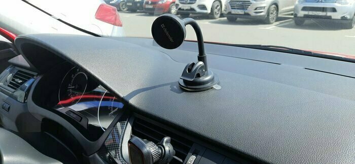 На передней панели автомобиля не держится. Под весом смартфона через пару минут отклеивается.