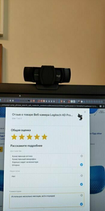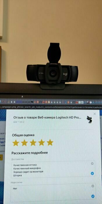 - Держится хорошо, рамку моника почти не ест - Картинка отличная - Микрофон достойный - Шторка спасает нервную систему (купил из-за неё в том числе) - Дизайн крутой, корпус не пачкается, ничего не остаётся, не маркий