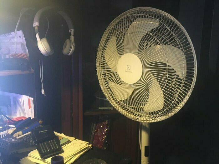 Вентилятор вполне современный, от внешнего вида, до функционала. Пультом включаю и режимы меняю, даже вставать с дивана не надо, очень удобно. За устойчивость дополнительный плюс, даже пес не смог уронить, хотя очень старался. Прохладно по всей комнате, раздувает мощно.