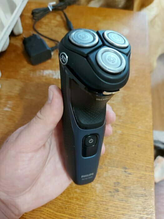 Хорошая бритва . Мне заряда хватает на долго при использовании 2 раза в неделю. Бреет не так чисто как традиционная бритва, но вид бритого лица создаёт.