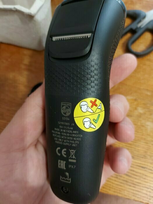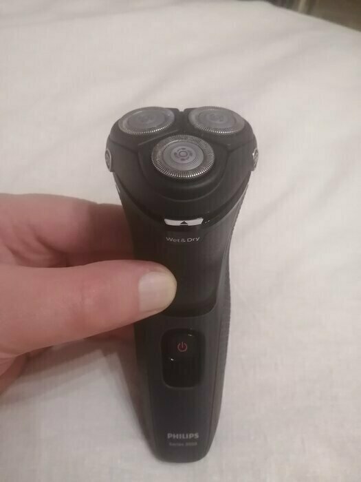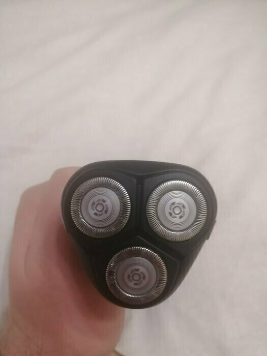 Работает. Воды не боится. Зарядки аккумулятора хватает 12 раз побриться, в среднем по 5 минут. Сначала пользовался гелем для бритья, но теперь бреюсь на сухую. Не так идеально как безопасной, но вполне неплохо.