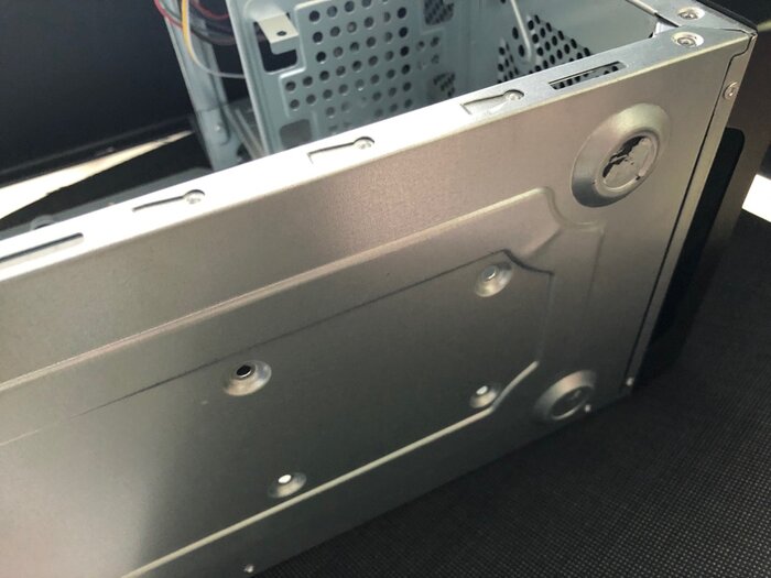 Приехал без ножек. Жесть в консервных банках и то толще. Заявлено 4 места под 3.5 диски, но я не нашёл. Приехал поцарапанный и нет спикера.