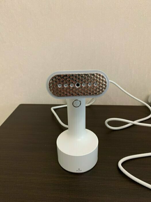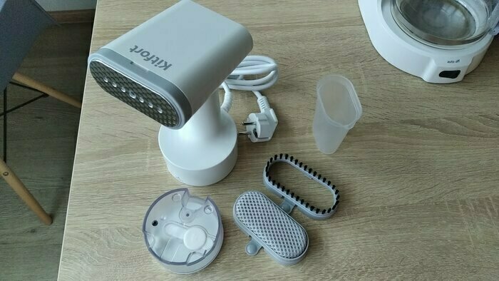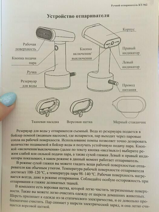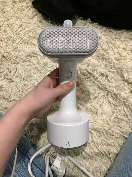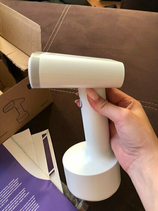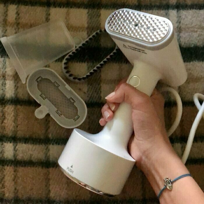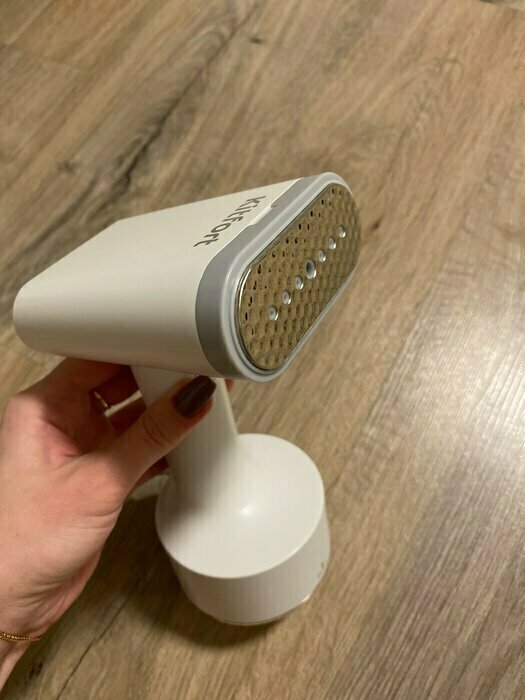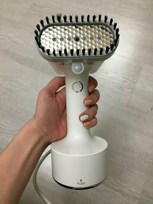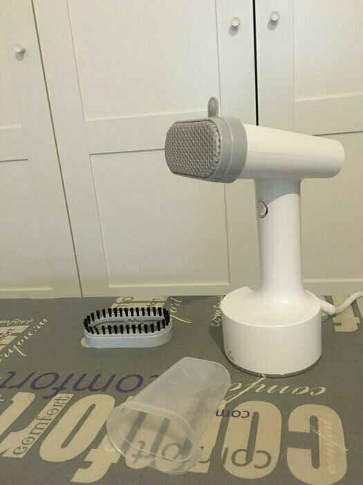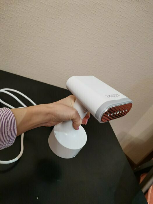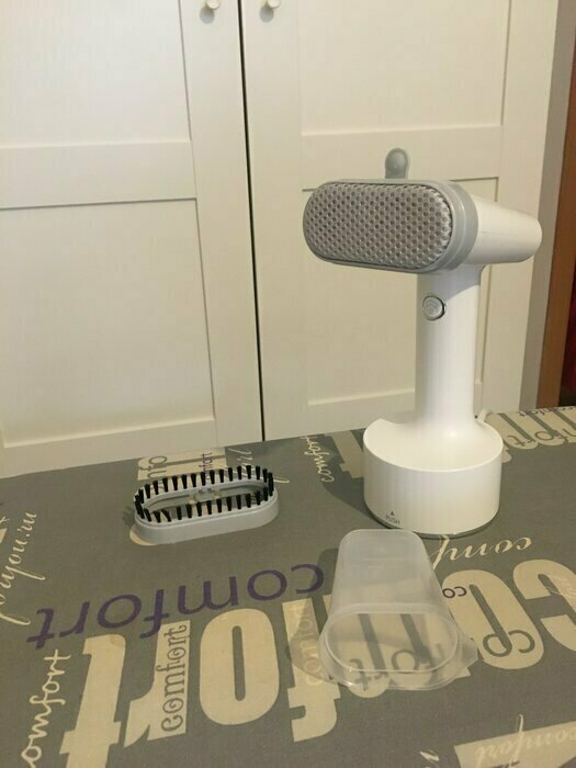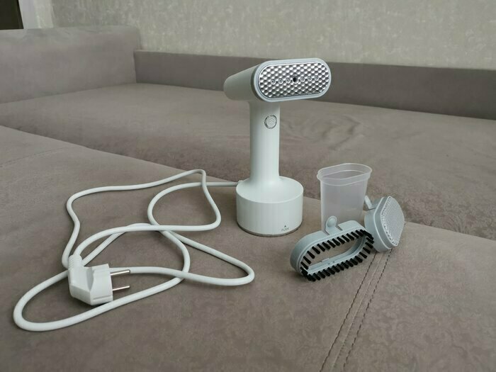 Такой красивый, стильный дизайн, очень добротно выполнен. Удобно лежит в руке. Есть 3 насадки в комплекте, инструкция очень понятная. Удобный контейнер для воды, снижу нажимаешь и контейнер как кнопка выходит наружу. Объем достаточный для глажки. 2 режима паровых ударов. На максимальном есть щелкающий звук, но не страшно, я про это до покупки еще читала в отзывах. Отпаривает на ура!!! Рекомендую. С учетом невысокой стоимости -просто находка!