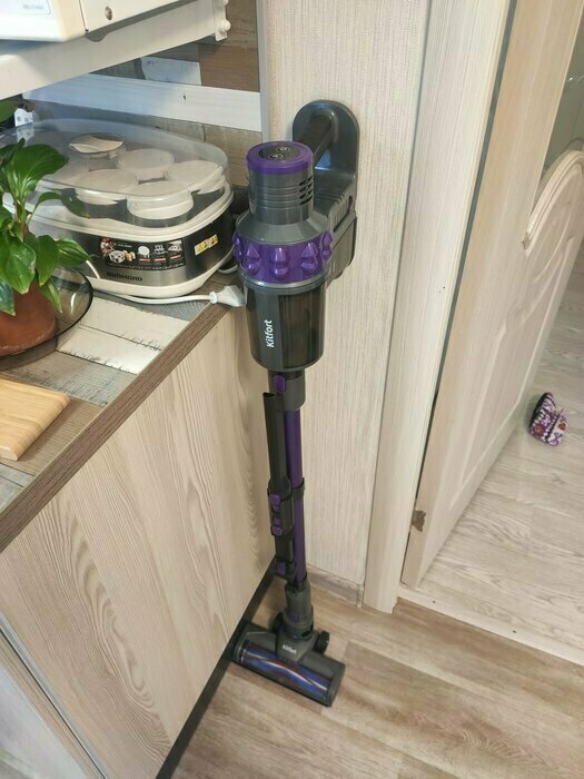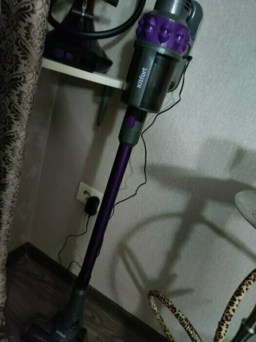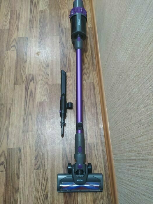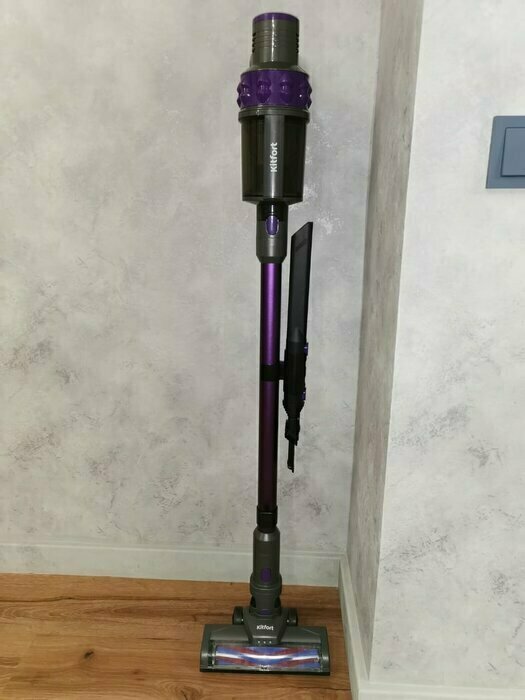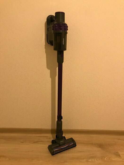 Давно собирался купить вертикальный пылесос, так как большой пылесос доставать не всегда охота, робот-пылесос, который до этого справлялся с пылью, начал глючить. Остановился на Китфорте, так как пользуемся разной техникой этого бренда и все устраивает. Пылесос этот купил по акции от Китфорт со скидкой на ЯМ. Первое впечатление испортилось после того, как вытряхнул контейнер с пылью. В инструкции поверхностно написано, как обратно его вставлять. Я задолбался его соединять! В итоге соединил, но был какой-то непонятный зазор между ручкой и контейнером. В итоге не заработала турбо-щетка и подсветка. Снова начал соединять. Снова зазор, , все заработало, но пыль не проваливалась в контейнер. И тут до меня дошло, что нужно внимательно размещать блок с фильтром строго по совпадению закругления в фильтре и трубы. Тогда сразу исчез зазор, все стало идеально соединяться и работать. См. фото. Теперь пылесос радует своей работой!