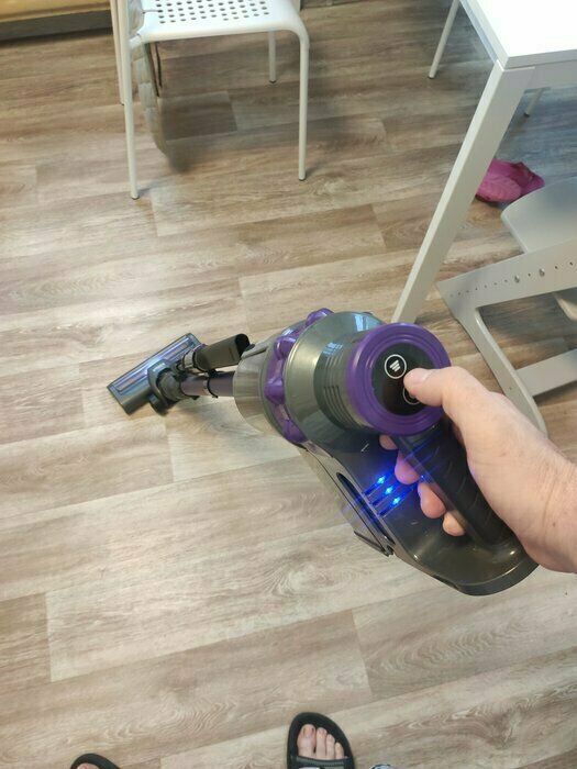 Замечательный пылесос. Незаменимый помощник каждой хозяйки. Лёгкий и маневренный, за счёт подсветки уборка в удовольствие всё видно как на ладони. Несмотря на то что он беспроводной очень мощный. Зарядки хватает на уборку всей квартиры. Всем советую!